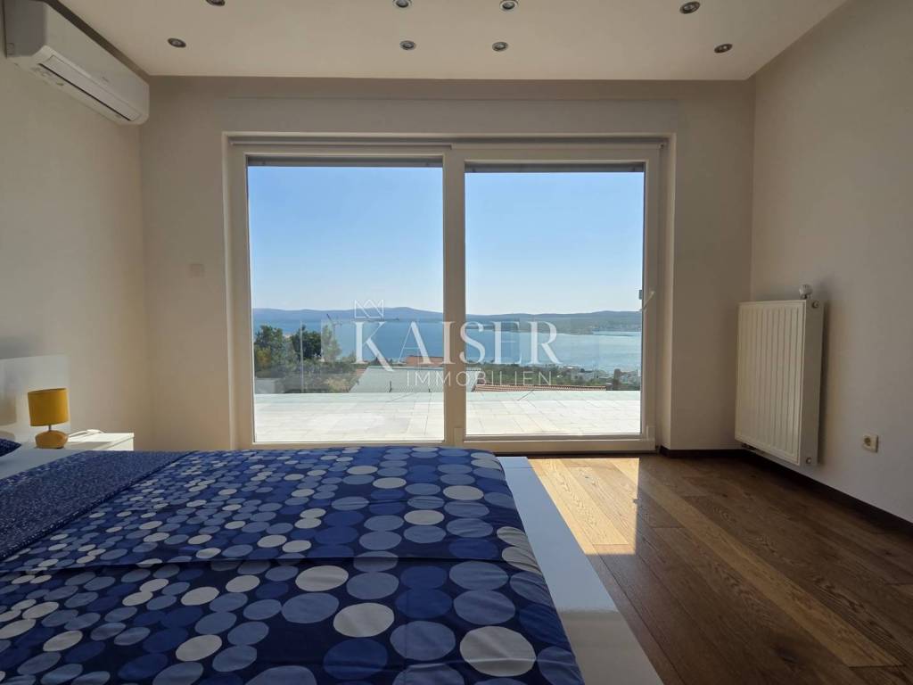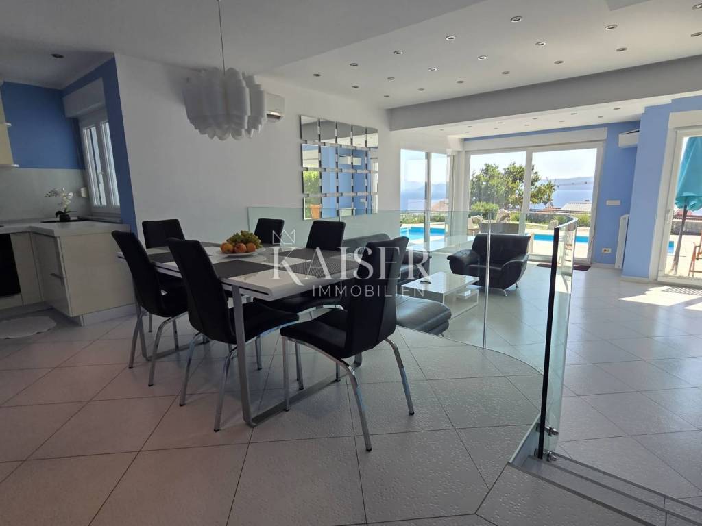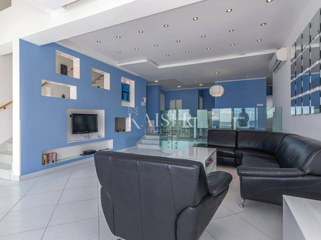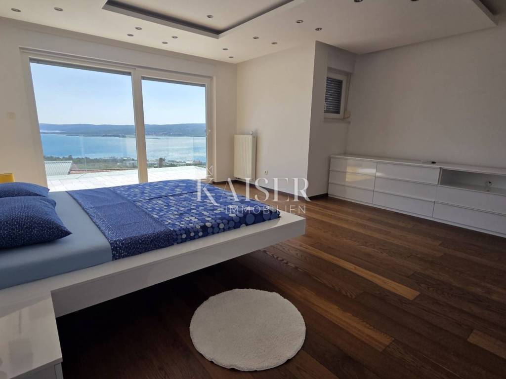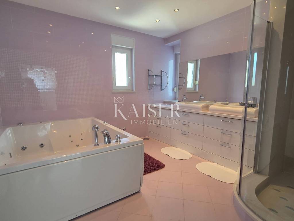 Exklusiv, nur hier! Kaiser Immobilien präsentiert eine wunderschöne Villa in Crikvenica mit Panoramablick auf das Meer, die Insel Krk, Cres, Velebit und Učka. Diese traumhafte Villa erstreckt sich über ein 862 m² großes Grundstück, wovon 135 m² Wohnfläche und 663 m² Garten plus ein 64 m² großer Swimmingpool zur Verfügung stehen. Die Villa besteht aus Untergeschoss, Erdgeschoss, Obergeschoss und Dachterrasse. Im Untergeschoss befinden sich ein großer Abstellraum, ein weiterer Abstellraum mit Heizungsraum, eine Waschküche mit WC, ein Badezimmer mit Platz für eine Sauna sowie zwei geräumige Räume mit Billard, Tischtennisplatte, einem Fitnessraum und einem als „Männerhöhle“ eingerichteten TV-Raum mit PlayStation. Im Erdgeschoss befinden sich ein großzügiges Wohnzimmer mit Essbereich und einer voll ausgestatteten Einbauküche, eine Eingangshalle, ein Arbeitszimmer, ein Schlafzimmer und ein Badezimmer. Im Flur befindet sich ein großer Einbauschrank, in der Küche eine Speisekammer. Die Villa ist über eine Innentreppe miteinander verbunden. Im ersten Stock befinden sich zwei Schlafzimmer, ein WC und ein großes Badezimmer mit Duschkabine und Whirlpool. Angrenzend liegt das Hauptschlafzimmer mit Zugang zu einem 25 m² großen Balkon mit herrlichem Panoramablick auf das Meer. Von dort gelangt man auf die 80 m² große Dachterrasse. Die Villa ist komplett möbliert. Die Küche ist mit modernen Geräten ausgestattet: Samsung-Kühlschrank, Gorenje-Backofen, Schott-Kochfeld, Faber-Dunstabzugshaube und Končar-Geschirrspüler. Die Badezimmer verfügen über Armaturen von Grohe und Laufen. Im Erdgeschoss befindet sich im Wohnzimmer eine Neo Plasma Inverter-Klimaanlage und im Schlafzimmer eine Maxon-Klimaanlage. Im ersten Stock ist im Flur eine Neo Plasma Inverter-Klimaanlage und im Hauptschlafzimmer eine Gree-Klimaanlage installiert. Das Haus verfügt über neue PVC-Fenster und -Türen mit elektrischen Rollläden an den Glaswänden für den Zugang zum Garten und zum Balkon. Die Abdichtung und die Fassade wurden erneuert. Die Villa ist mit einer Danfoss-Gegensprechanlage ausgestattet. Die Villa verfügt über eine elektrische Zentralheizung mit Solarenergie. Im gesamten Wohngebäude sind Heizkörper mit einer komplett neuen Anlage und Kupferrohren installiert. Die gesamte Wohnung ist mit Keramikfliesen ausgelegt, die Schlafzimmer mit Laminat. Der Balkon ist mit einem doppelwandigen Glasgeländer versehen. Vom Wohnzimmer aus gelangt man durch eine große Glaswand in einen weitläufigen Garten. Im hinteren Bereich des Gartens befinden sich mehrere Parkplätze. Vom vorderen Bereich aus erreicht man den 64 m² großen Swimmingpool. Um den Pool herum erstreckt sich ein schöner Garten, eine Liegewiese mit Dusche, eine große Veranda mit einem großen Tisch und einem Grill. Der Garten bietet einen unverbauten Panoramablick auf das Meer und die Kvarner-Bucht. Die Villa steht vom 30. April bis 30. September zur touristischen Vermietung zur Verfügung und ist für bis zu 8 Personen ausgelegt. Alle Dokumente sind vollständig. Die Immobilie kann auf Kredit erworben werden. Preisverhandlungen sind möglich. Nähe zu Annehmlichkeiten: Crikvenica, Zentrum – 1,5 km, Restaurant – 1 km, Café – 900 m, Geschäft – 1 km, Meer/Strand – 1,1 km, Yachthafen – 1 km, Apotheke – 1,1 km, Busbahnhof – 1,1 km, Sehenswürdigkeiten – 900 m, Rijeka – 32 km, Flughafen – 23 km. Entfernung zu größeren Städten: Crikvenica – Ljubljana: 147 km, Crikvenica – Wien: 519 km, Crikvenica – Budapest: 508 km, Crikvenica – Prag: 846 km, Crikvenica – München: 548 km, Crikvenica – Zagreb: 167 km. Die Maklerprovision für den Käufer beträgt 3 % zzgl. MwSt. und ist beim Kauf einer Immobilie mit Abschluss des ersten Rechtsaktes fällig. Interessenten können die Immobilie erst nach Unterzeichnung eines Maklervertrags besichtigen. Objektnummer: 110-182 Wenn Sie die Immobilie persönlich besichtigen möchten, kontaktieren Sie bitte: Davor Piškulić E-Mail: davor@kaiser-immobilien.hr Tel.: +385 95 583 8240 WhatsApp, Viber