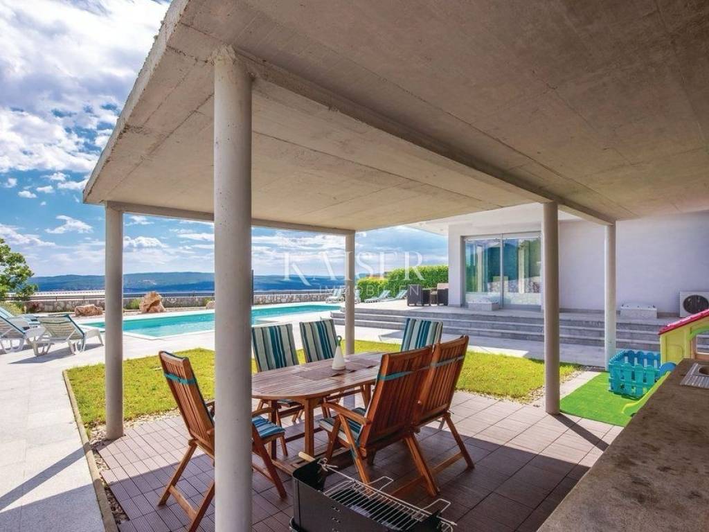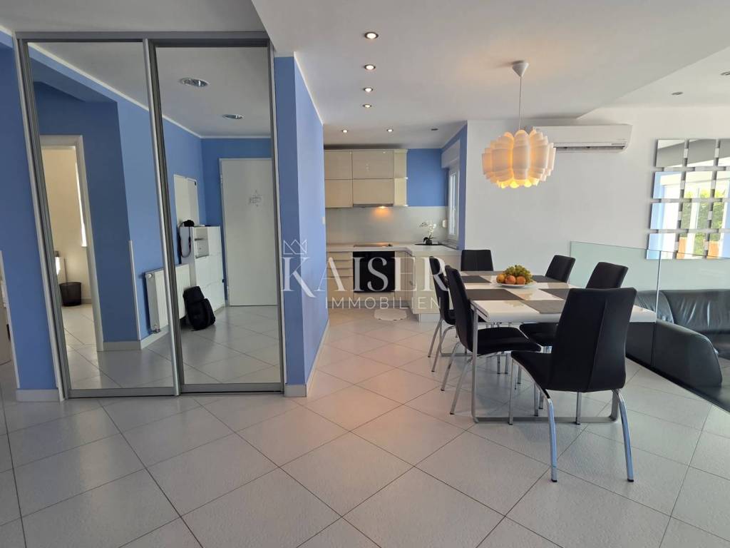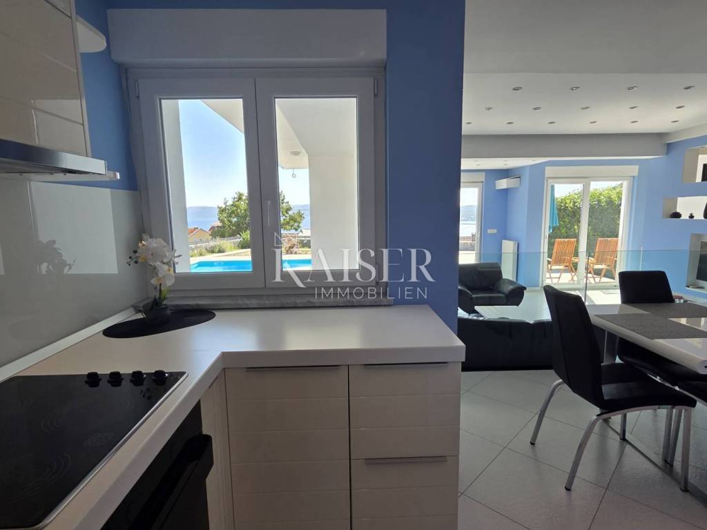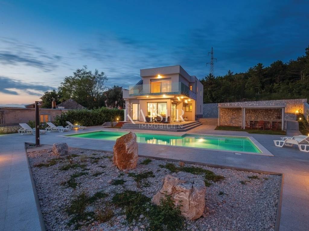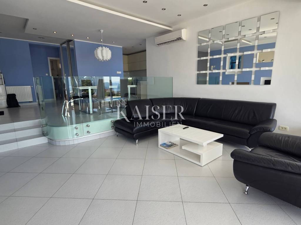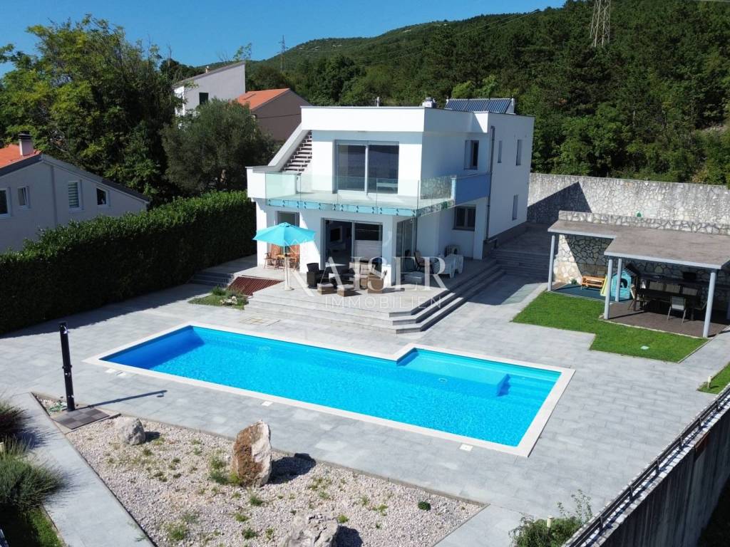 Exklusiv, nur hier! Kaiser Immobilien präsentiert eine wunderschöne Villa in Crikvenica mit Panoramablick auf das Meer, die Insel Krk, Cres, Velebit und Učka. Diese traumhafte Villa erstreckt sich über ein 862 m² großes Grundstück, wovon 135 m² Wohnfläche und 663 m² Garten plus ein 64 m² großer Swimmingpool zur Verfügung stehen. Die Villa besteht aus Untergeschoss, Erdgeschoss, Obergeschoss und Dachterrasse. Im Untergeschoss befinden sich ein großer Abstellraum, ein weiterer Abstellraum mit Heizungsraum, eine Waschküche mit WC, ein Badezimmer mit Platz für eine Sauna sowie zwei geräumige Räume mit Billard, Tischtennisplatte, einem Fitnessraum und einem als „Männerhöhle“ eingerichteten TV-Raum mit PlayStation. Im Erdgeschoss befinden sich ein großzügiges Wohnzimmer mit Essbereich und einer voll ausgestatteten Einbauküche, eine Eingangshalle, ein Arbeitszimmer, ein Schlafzimmer und ein Badezimmer. Im Flur befindet sich ein großer Einbauschrank, in der Küche eine Speisekammer. Die Villa ist über eine Innentreppe miteinander verbunden. Im ersten Stock befinden sich zwei Schlafzimmer, ein WC und ein großes Badezimmer mit Duschkabine und Whirlpool. Angrenzend liegt das Hauptschlafzimmer mit Zugang zu einem 25 m² großen Balkon mit herrlichem Panoramablick auf das Meer. Von dort gelangt man auf die 80 m² große Dachterrasse. Die Villa ist komplett möbliert. Die Küche ist mit modernen Geräten ausgestattet: Samsung-Kühlschrank, Gorenje-Backofen, Schott-Kochfeld, Faber-Dunstabzugshaube und Končar-Geschirrspüler. Die Badezimmer verfügen über Armaturen von Grohe und Laufen. Im Erdgeschoss befindet sich im Wohnzimmer eine Neo Plasma Inverter-Klimaanlage und im Schlafzimmer eine Maxon-Klimaanlage. Im ersten Stock ist im Flur eine Neo Plasma Inverter-Klimaanlage und im Hauptschlafzimmer eine Gree-Klimaanlage installiert. Das Haus verfügt über neue PVC-Fenster und -Türen mit elektrischen Rollläden an den Glaswänden für den Zugang zum Garten und zum Balkon. Die Abdichtung und die Fassade wurden erneuert. Die Villa ist mit einer Danfoss-Gegensprechanlage ausgestattet. Die Villa verfügt über eine elektrische Zentralheizung mit Solarenergie. Im gesamten Wohngebäude sind Heizkörper mit einer komplett neuen Anlage und Kupferrohren installiert. Die gesamte Wohnung ist mit Keramikfliesen ausgelegt, die Schlafzimmer mit Laminat. Der Balkon ist mit einem doppelwandigen Glasgeländer versehen. Vom Wohnzimmer aus gelangt man durch eine große Glaswand in einen weitläufigen Garten. Im hinteren Bereich des Gartens befinden sich mehrere Parkplätze. Vom vorderen Bereich aus erreicht man den 64 m² großen Swimmingpool. Um den Pool herum erstreckt sich ein schöner Garten, eine Liegewiese mit Dusche, eine große Veranda mit einem großen Tisch und einem Grill. Der Garten bietet einen unverbauten Panoramablick auf das Meer und die Kvarner-Bucht. Die Villa steht vom 30. April bis 30. September zur touristischen Vermietung zur Verfügung und ist für bis zu 8 Personen ausgelegt. Alle Dokumente sind vollständig. Die Immobilie kann auf Kredit erworben werden. Preisverhandlungen sind möglich. Nähe zu Annehmlichkeiten: Crikvenica, Zentrum – 1,5 km, Restaurant – 1 km, Café – 900 m, Geschäft – 1 km, Meer/Strand – 1,1 km, Yachthafen – 1 km, Apotheke – 1,1 km, Busbahnhof – 1,1 km, Sehenswürdigkeiten – 900 m, Rijeka – 32 km, Flughafen – 23 km. Entfernung zu größeren Städten: Crikvenica – Ljubljana: 147 km, Crikvenica – Wien: 519 km, Crikvenica – Budapest: 508 km, Crikvenica – Prag: 846 km, Crikvenica – München: 548 km, Crikvenica – Zagreb: 167 km. Die Maklerprovision für den Käufer beträgt 3 % zzgl. MwSt. und ist beim Kauf einer Immobilie mit Abschluss des ersten Rechtsaktes fällig. Interessenten können die Immobilie erst nach Unterzeichnung eines Maklervertrags besichtigen. Objektnummer: 110-182 Wenn Sie die Immobilie persönlich besichtigen möchten, kontaktieren Sie bitte: Davor Piškulić E-Mail: davor@kaiser-immobilien.hr Tel.: +385 95 583 8240 WhatsApp, Viber