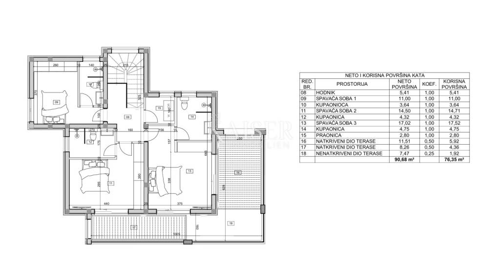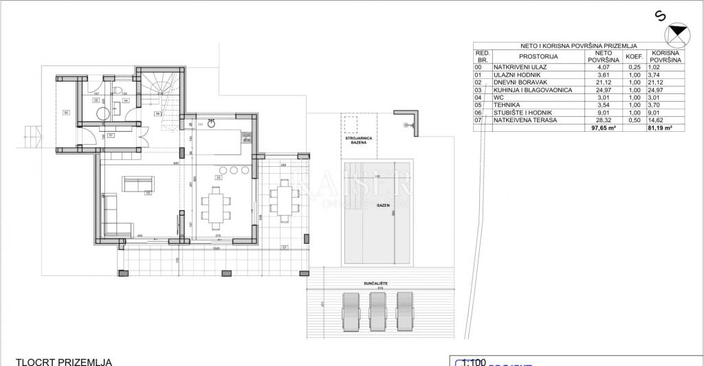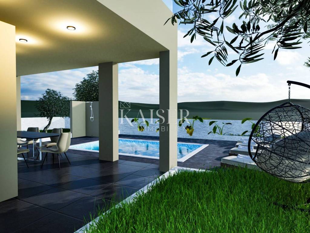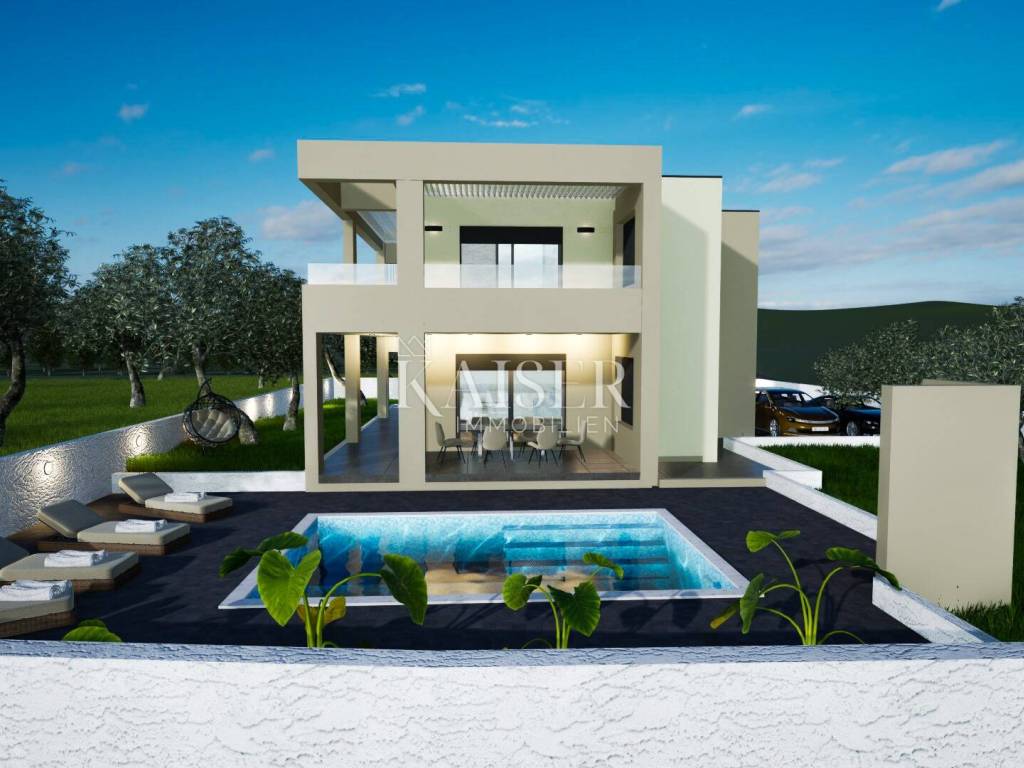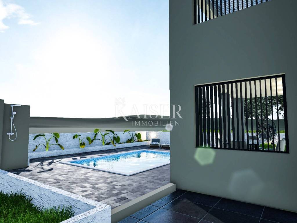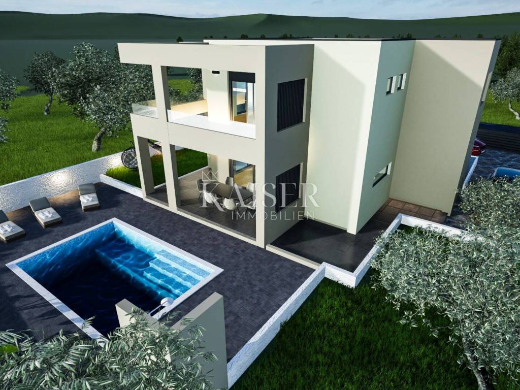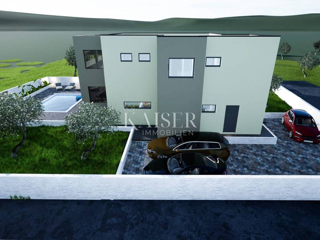Wir präsentieren Ihnen eine außergewöhnliche Gelegenheit, eine moderne Villa in der idyllischen Umgebung von Vodice zu erwerben. Dieses luxuriös gestaltete Anwesen bietet die perfekte Mischung aus mediterranem Charme, zeitgenössischer Architektur und höchstem Komfort, ideal für das Familienleben, den Urlaub oder als Investition zur touristischen Vermietung. Geräumiges Erdgeschoss – Das Herz des Hauses (Nettofläche: 97,65 m²) Das Erdgeschoss der Villa ist als offener, heller Raum konzipiert, der zum geselligen Beisammensein und Entspannen gedacht ist. Es wird von einem geräumigen Wohnzimmer (21,12 m²) dominiert, das nahtlos in die elegante Küche und das Esszimmer (24,97 m²) übergeht und so das perfekte Ambiente für Familientreffen und Unterhaltung schafft. Von diesen Räumen gibt es einen direkten Zugang zu einer großen überdachten Terrasse (28,32 m² / 14,62 m² Nutzfläche), die Schatten spendet und ein idealer Ort für Mahlzeiten im Freien ist. Weitere Merkmale des Erdgeschosses: Überdachter Eingang (4,07 m² / 1,02 m² Nutzfläche) – ein eleganter Empfang im Heim. Eingangshalle (3,61 m²) – funktional und geräumig. WC (3,01 m²) – praktisch gelegen für Gäste. Technikraum (3,54 m²) – diskret gelegen für Installationen. Treppe und Flur (9,01 m²) – führen in die obere Etage. Komfortable Etage – Oase der Ruhe und Privatsphäre (Nettofläche: 90,68 m²) Diese Etage der Villa ist für Entspannung und Privatsphäre vorgesehen und verfügt über drei geräumige Schlafzimmer und deren Badezimmer sowie zusätzliche Terrassen. Detaillierte Etagenaufteilung: FLUR (5,41 m²) – verbindet alle Räume auf der Etage. SCHLAFZIMMER 1 (11,00 m²) – geräumig und komfortabel. BADEZIMMER (3,64 m²) – elegant eingerichtet. SCHLAFZIMMER 2 (14,50 m²) – mit eigenem Badezimmer. BADEZIMMER (4,32 m²) – neben Schlafzimmer 2. SCHLAFZIMMER 3 (17,02 m²) – das größte Schlafzimmer für kompletten Komfort. BADEZIMMER (4,75 m²) – neben Schlafzimmer 3. WASCHKÜCHE (2,80 m²) – praktisch für den Alltag. ÜBERDACHTER TERRASSENTEIL (11,51 m² / 5,92 m² nutzbar) – ein idealer Ort für den Morgenkaffee. ÜBERDACHTER TERRASSENTEIL (8,26 m² / 4,36 m² nutzbar) – zusätzlicher Raum zum Entspannen. UNÜBERDACHTER TERRASSENTEIL (7,47 m² / 1,92 m² nutzbar) – zum Sonnenbaden und für den Panoramablick. Die gesamte Nettofläche des Hauses (Erdgeschoss + erster Stock) beträgt beeindruckende 188,33 m²! Großzügiges Grundstück für vollkommenen Genuss (619 m²) Der Außenbereich des Erdgeschosses ist mit einem schönen Swimmingpool (24 m²) mit einer geräumigen Liegewiese (97,41 m²) geschmückt, die wie geschaffen ist, um die Sommertage zu genießen und unter der Mittelmeersonne zu entspannen. Der Hof mit einer Gesamtfläche von 619 m² bietet außerdem 263,98 m² Grünfläche, die Privatsphäre und ein natürliches Ambiente gewährleisten. Die gepflasterte Einfahrt und der Parkplatz nehmen 98,55 m² ein und bieten ausreichend Platz für Fahrzeuge. Möglichkeit der persönlichen Note Diese Villa befindet sich derzeit in der letzten Bauphase, was den neuen Eigentümern eine einzigartige Gelegenheit gibt, an der Fertigstellung der Inneneinrichtung mitzuwirken. Wählen Sie Details wie Bodenbelag, Sanitärkeramik, Innenschreinereiarbeiten und andere Elemente, um ein Zuhause nach Ihren eigenen Maßen und in Ihrem Stil zu schaffen. Diese Villa ist das perfekte Zuhause für alle, die Qualität, Luxus und Ruhe suchen und gleichzeitig in der Nähe aller Annehmlichkeiten von Vodice sein möchten. Genießen Sie das moderne Design, die funktionale Raumaufteilung und den schönen Außenbereich mit Swimmingpool. Lassen Sie sich diese einmalige Gelegenheit nicht entgehen! Die Maklerprovision für den Käufer beträgt 3 % zzgl. MwSt. und wird beim Immobilienkauf bei Vertragsabschluss fällig. Besichtigungen der Immobilie sind nur nach vorheriger Unterzeichnung eines Vermittlungsvertrags möglich. Wenn Sie die Immobilie persönlich besichtigen möchten, wenden Sie sich bitte an: Joško Bašić E-Mail: josko@kaiser-immobilien.hr Tel.: +385-91-511-2993 http://kaiser-immobilien.hr/
