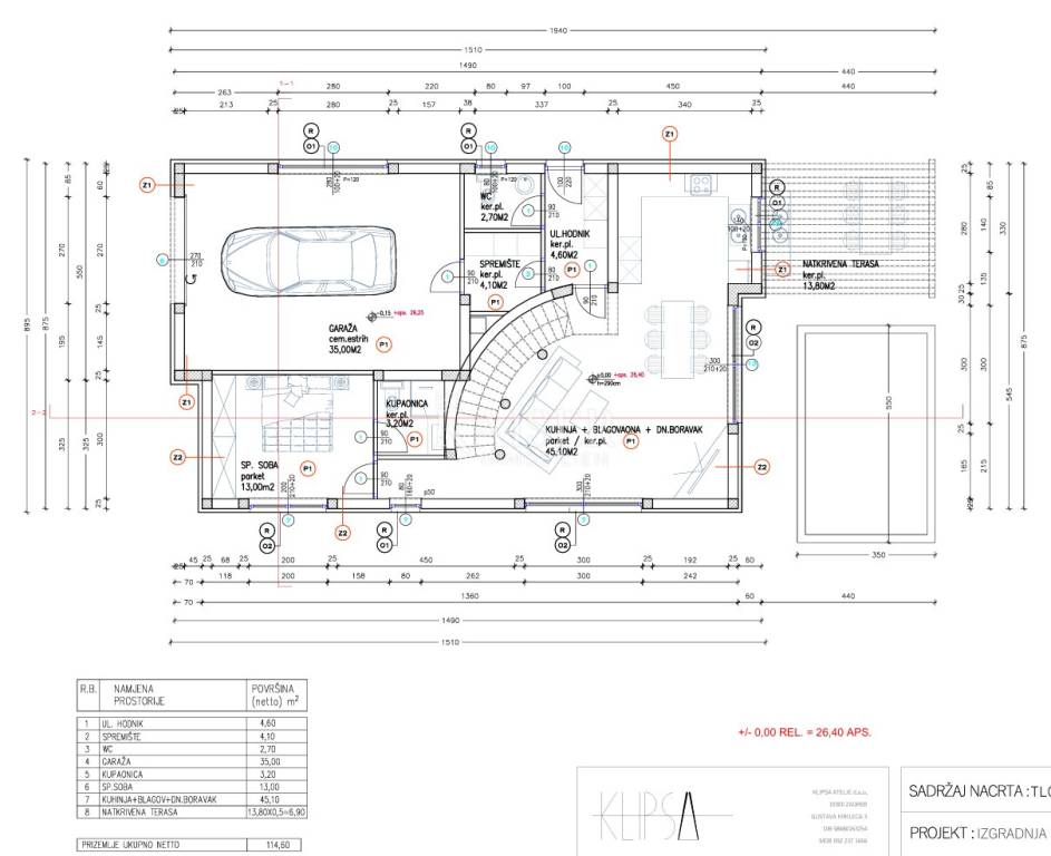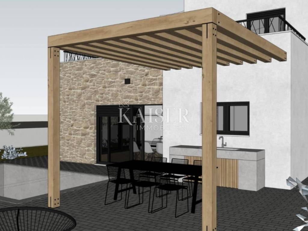 Kaiser Immobilien präsentiert stolz: Moderne zweistöckige Villa mit Garage und großzügigen Terrassen in Vodice. In ruhiger und begehrter Lage in Vodice befindet sich diese wunderschöne, neu gestaltete zweistöckige Villa, die moderne Architektur, Luxus und Funktionalität perfekt vereint. Das Anwesen wurde mit dem Ziel maximalen Komforts entworfen und ist ideal für Familien. Großzügige Innenräume und wunderschöne Außenbereiche ergänzen das Gesamtbild. ÜBER DAS OBJEKT: Die freistehende Villa erstreckt sich über zwei Etagen und bietet eine Wohnfläche von 196,60 m². Der durchdachte Grundriss sorgt für optimale Raumnutzung, viel Tageslicht und ein offenes Raumgefühl. Zur Immobilie gehören eine große Garage, drei Schlafzimmer, mehrere Badezimmer und äußerst großzügige Terrassen, die zum Entspannen und geselligen Beisammensein einladen. AUFTEILUNG DER VILLA: ERDGESCHOSS (Wohnfläche 114,80 m²): Das Herzstück des Hauses bildet ein großzügiger, offener Wohnbereich, der Küche, Esszimmer und Wohnzimmer vereint und direkten Zugang zur überdachten Terrasse bietet. Ein separater Schlafbereich im Erdgeschoss sorgt für zusätzliche Privatsphäre. Küche, Esszimmer und Wohnzimmer: 45,10 m² Schlafzimmer 1: 13,00 m² Badezimmer: 3,20 m² Garage: 35,00 m² Eingangsbereich: 4,60 m² Abstellraum: 4,10 m² Gäste-WC: 2,70 m² Überdachte Terrasse: 13,80 m² ERDGESCHOSS (Gesamtnutzfläche 81,80 m²): Das Obergeschoss ist als ruhige Oase der Entspannung gestaltet. Es besteht aus zwei weiteren Schlafzimmern, zwei Badezimmern und Zugang zu zwei großen Terrassen. Eine Terrasse bietet absolute Privatsphäre, die andere ist ein großzügiger Bereich zum Genießen der Natur. Flur: 11,40 m² Schlafzimmer 2: 14,30 m² Schlafzimmer 3: 12,40 m² Badezimmer 2: 4,50 m² Badezimmer 3: 3,40 m² Überdachte Terrasse: 15,30 m² Nicht überdachte Terrasse: 40,80 m² LAGE: Die Villa befindet sich in exzellenter Lage in Vodice. Sie bietet Ruhe und Privatsphäre und ist gleichzeitig gut an alle wichtigen Einrichtungen angebunden. Die Nähe zum Meer und den wunderschönen Stränden, für die Vodice bekannt ist, trägt zusätzlich zur hohen Lebensqualität bei. Diese moderne Villa ist eine außergewöhnliche Gelegenheit für alle, die ein Traumhaus suchen, das höchsten Ansprüchen an zeitgemäßes Wohnen gerecht wird. Die Maklerprovision für den Käufer beträgt 3 % zzgl. MwSt. und wird im Falle eines Immobilienkaufs mit Abschluss der ersten notariellen Urkunde fällig. Eine Besichtigung ist nur nach vorheriger Unterzeichnung eines Maklervertrags möglich. Wenn Sie die Immobilie persönlich besichtigen möchten, wenden Sie sich bitte an: Joško Bašić E-Mail: josko@kaiser-immobilien.hr Tel.: +385-91-511-2993 http://kaiser-immobilien.hr/