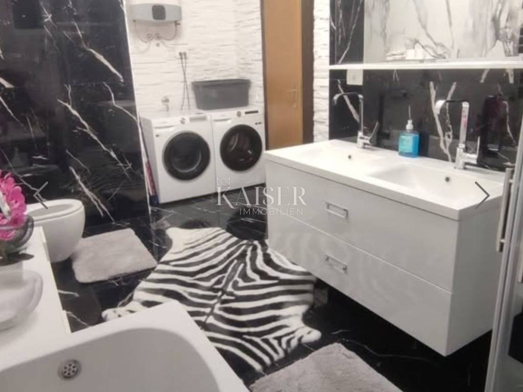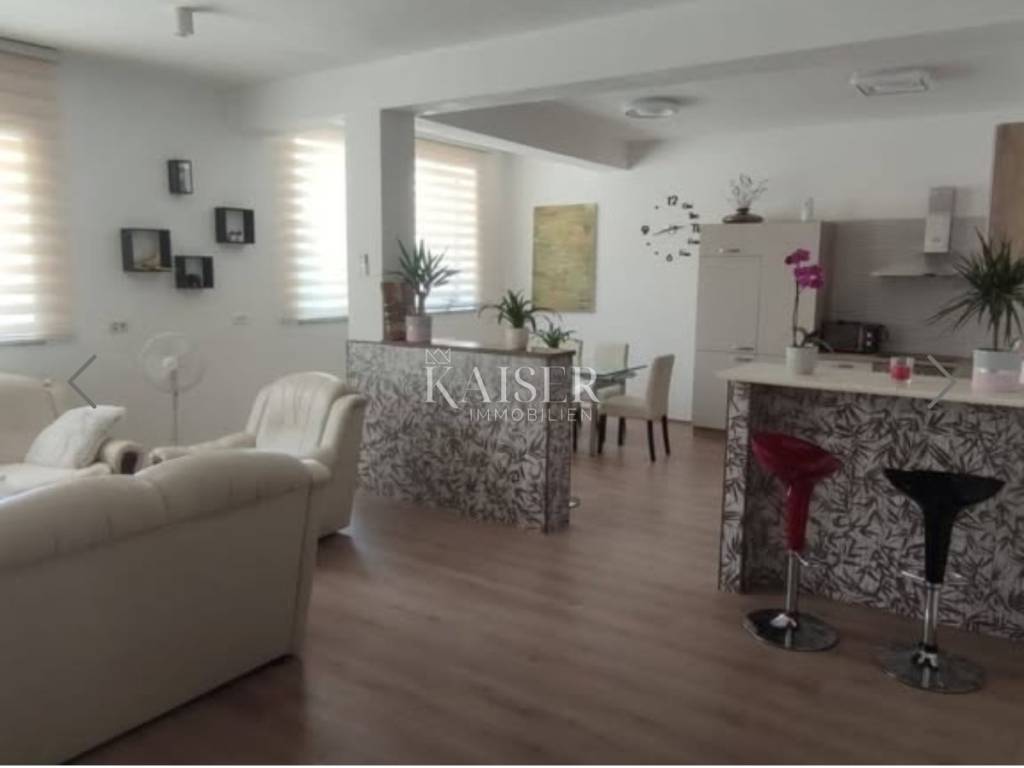 KAISER IMMOBILIEN präsentiert Ihnen dieses Mal eine wunderschöne Wohnung mit großzügigen Zimmern und einem 50 m² großen Wohnzimmer. Pula ist die größte Stadt der Gespanschaft Istrien und liegt im Süden Istriens. Sie ist bekannt für ihre reiche Geschichte und ihre gut erhaltenen römischen Denkmäler. Das berühmteste Wahrzeichen ist die Arena von Pula, eines der am besten erhaltenen römischen Amphitheater der Welt, das auch heute noch für kulturelle Veranstaltungen genutzt wird. Die Stadt blickt auf eine lange maritime und industrielle Tradition zurück und ist gleichzeitig ein bedeutendes Touristenzentrum mit angenehmem mediterranem Klima, wunderschönen Stränden und einem vielfältigen Kulturangebot. Die Wohnung ist über einen kurzen, diskreten Flur zugänglich, der wie eine Einleitung den luxuriösen Charakter der folgenden Räume ankündigt. Gleich beim Betreten empfängt Sie ein äußerst geräumiges und helles Wohnzimmer von ca. 50 m², das von Luft, Licht und Gemütlichkeit durchflutet ist – ideal zum Entspannen, für gesellige Stunden und gemütliche Momente mit der Familie. Eine elegante Bar mit stilvollen Barhockern verbindet Wohn- und Esszimmer und schafft so eine dezente Trennung der beiden Bereiche – der perfekte Ort für den Morgenkaffee oder gesellige Abende. Hinter dem Esszimmer befindet sich eine große, funktionale und maßgefertigte Küche, die mit viel Liebe zum Detail gestaltet wurde. Hier verschmelzen Ästhetik und Funktionalität zu einem harmonischen Ganzen und bieten den idealen Raum für kulinarische Kreativität. Der Schlafbereich der Wohnung strahlt Ruhe und Privatsphäre aus und umfasst zwei äußerst geräumige Zimmer. Das Hauptschlafzimmer bietet eine Oase der Ruhe und Intimität, während das große Kinderzimmer mit seinen vielen Möglichkeiten und seiner warmen Atmosphäre ideal zum Spielen, Lernen und Aufwachsen ist. Die Wohnung verfügt außerdem über ein großes, elegantes Badezimmer (12 m²), das ein Gefühl von Wohlbefinden vermittelt, sowie ein separates Gäste-WC, das die Funktionalität und den Komfort des Raumes zusätzlich unterstreicht. Die gesamte Wohnung strahlt Leichtigkeit, Harmonie und ein behagliches Wohngefühl aus und schafft eine Atmosphäre, in der man sich gerne aufhält und wohlfühlt. In einer ruhigen Gegend, an einer unauffälligen Seitenstraße gelegen, bietet diese Wohnung die perfekte Balance zwischen Privatsphäre und der Nähe zu allen wichtigen Einrichtungen. Schule, Kindergarten, Spielplatz und Geschäfte befinden sich in unmittelbarer Nähe, was die Lage äußerst praktisch und ideal für Familien macht. Dieses Zuhause vereint Ruhe, Weite und Gemütlichkeit – ein Ort, an dem der Alltag angenehm und das Leben erfüllt ist. Zur Wohnung gehört außerdem ein Abstellraum direkt neben der Eingangstür sowie ein 100 m² großer Gemeinschaftsbereich im Untergeschoss, der den Mietern zur Verfügung steht. Hier befinden sich ein schöner Grillplatz und ein Bereich für gemeinsame Freizeitaktivitäten wie eine Tischtennisplatte.