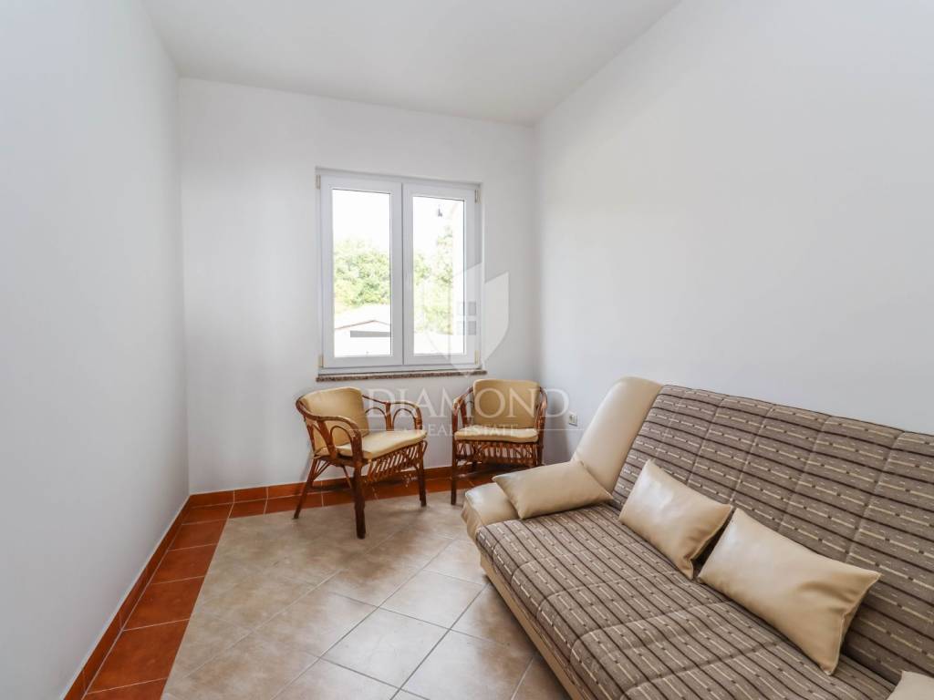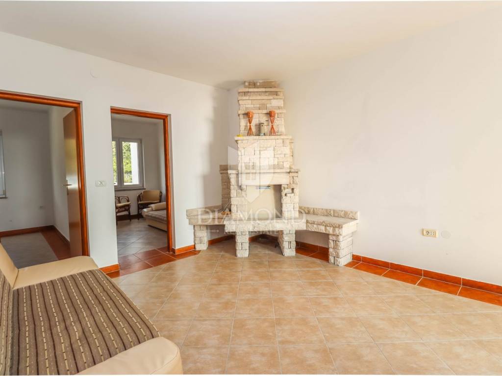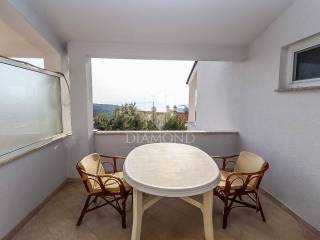 Die Wohnung befindet sich im ersten Stock einer kleineren Wohneinheit und besteht aus zwei Zimmern, einem Badezimmer, einer Küche, einem Esszimmer und einem Wohnzimmer, die zusammen einen offenen und angenehmen Raum für geselliges Beisammensein bilden. Was diese Wohnung noch schöner macht, ist der Kamin. In kälteren Nächten lassen sich damit wunderschöne Momente verbringen. Vom Wohnzimmer aus hat man Zugang zur Lodja, die einen Blick auf das Meer bietet.