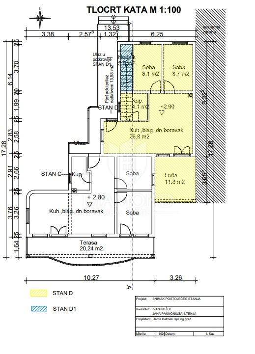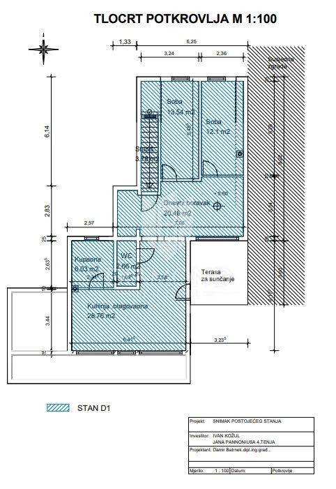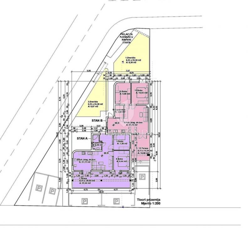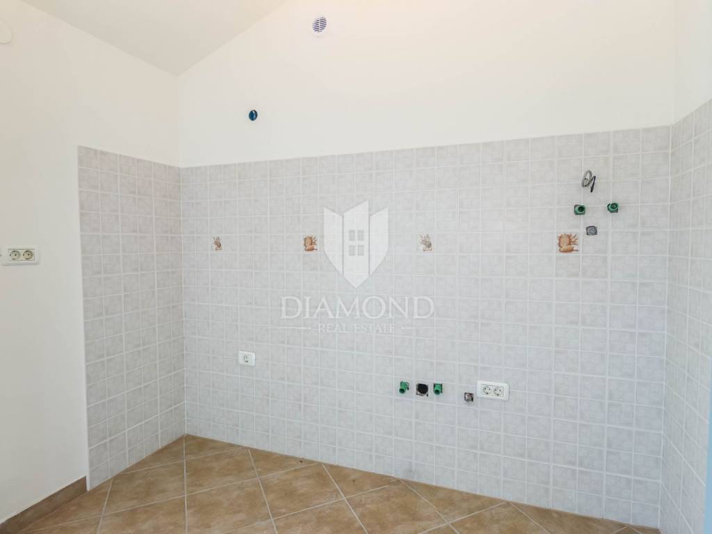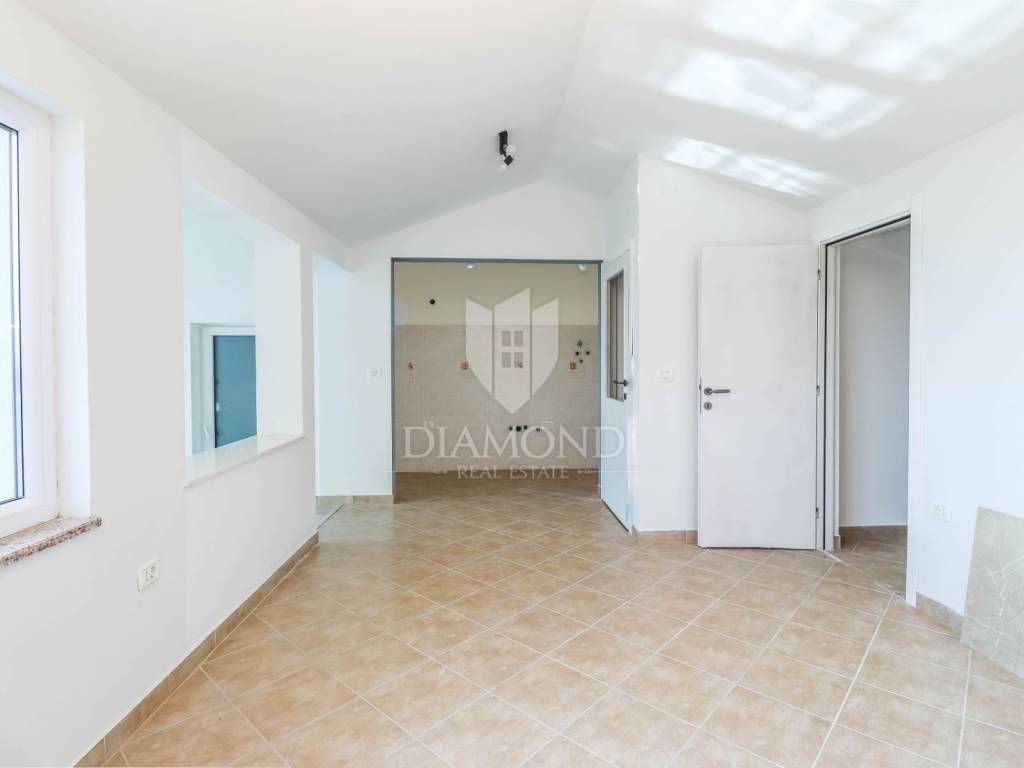 Die Wohnung ist 70 m2 groß und besteht aus einem Flur, zwei Schlafzimmern, Küche, Esszimmer und Wohnzimmer, die zusammen einen offenen Raum bilden. Der Meerblick vom Wohnzimmer aus macht diese Immobilie besonders attraktiv für Liebhaber der Natur und der Schönheit der Küste. Die Lage im Dachgeschoss sorgt für viel Tageslicht und ein Gefühl von Großzügigkeit.