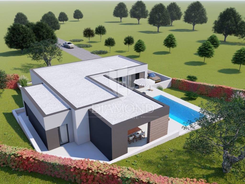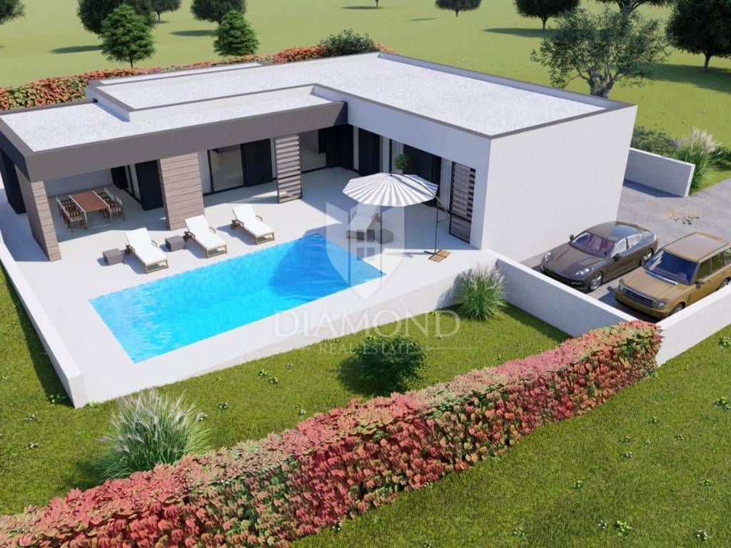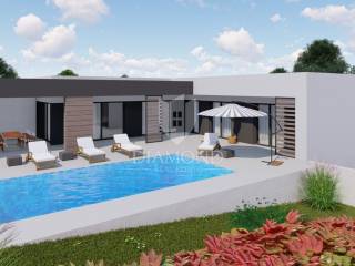 **Verkauf von Bauland mit Genehmigung in Labin** Wir bieten eine seltene Gelegenheit, in ein äußerst attraktives Baugrundstück im Herzen von Labin zu investieren, mit bereits genehmigter Baugenehmigung. Diese idyllische Lage bietet eine ideale Kombination aus ruhiger Umgebung und der Nähe zu allen notwendigen Annehmlichkeiten. Das mit Liebe zum Detail gestaltete Erdgeschossprojekt umfasst 180 m2 Bruttofläche. Der großzügige Wohnbereich mit großen Glaswänden bietet viel Tageslicht und direkten Zugang zu einer schönen überdachten Terrasse, ideal zum Entspannen und geselligen Beisammensein. Die Sommerküche und der Swimmingpool bereichern den Außenbereich zusätzlich und schaffen das perfekte Ambiente für Spaß und Entspannung. Die Schlafzimmer sind geräumig und komfortabel und verfügen jeweils über ein eigenes Bad, was Privatsphäre und Intimität bietet. Ein zusätzliches WC, ein Abstellraum und ein Hauswirtschaftsraum sorgen für Praktikabilität und Organisation des Alltags. Die Lage ist äußerst friedlich und ruhig, was ideal für diejenigen ist, die einen ruhigen Wohnraum suchen, und gleichzeitig sehr attraktiv durch die Nähe zu allen wichtigen Einrichtungen wie Geschäften, Schulen, Restaurants und öffentlichen Verkehrsmitteln. Diese einmalige Gelegenheit, Bauland mit bereits genehmigter Baugenehmigung in Labin zu kaufen, sollten Sie sich nicht entgehen lassen. Kontaktieren Sie uns noch heute, um mehr zu erfahren und diese außergewöhnliche Gelegenheit zu nutzen, in Ihre Zukunft zu investieren.