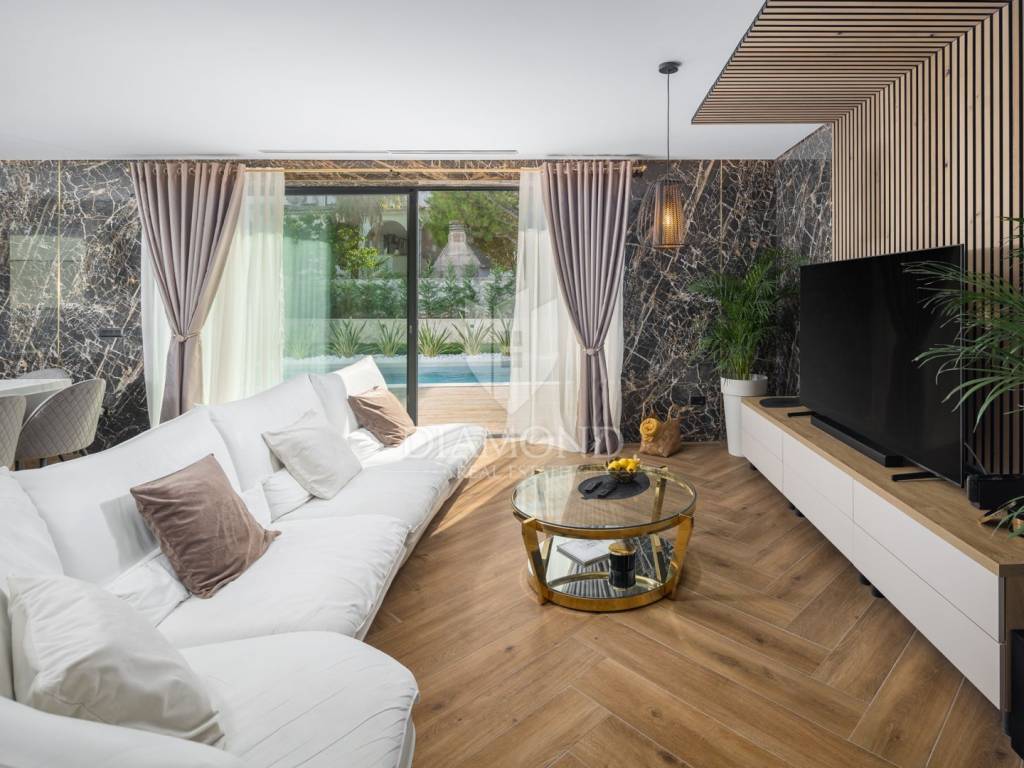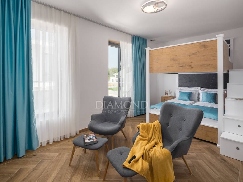 Poreč, Istrien – Modernes Haus in Meeresnähe! Zum Verkauf steht ein modernes Haus in unmittelbarer Nähe zum Meer, in einer ruhigen Gegend mit kompletter Infrastruktur. Dieses schöne Haus erstreckt sich über eine Gesamtfläche von 180 m², verteilt auf zwei Etagen.