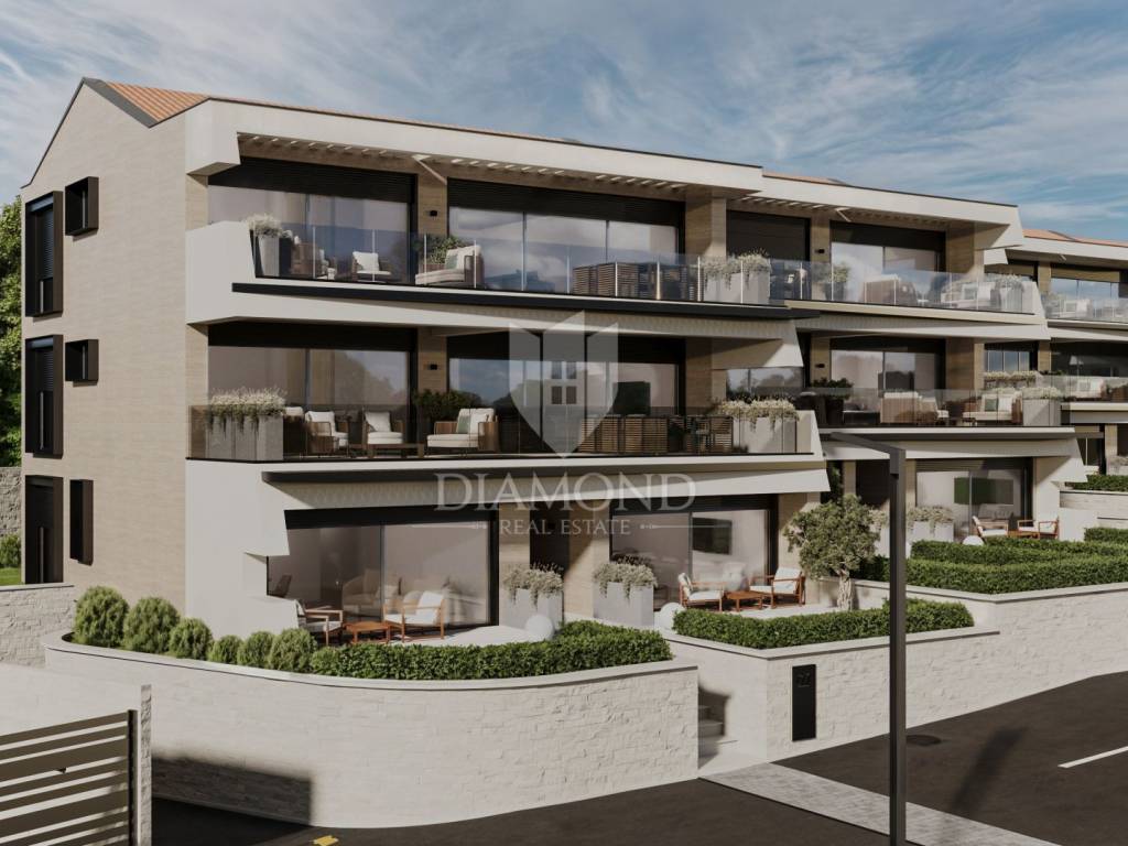 Die Wohnung befindet sich im 1. Stock eines modernen Gebäudes. Die Gesamtfläche der Wohnung beträgt 126 m2. Es besteht aus einem Wohnzimmer mit offener Küche und Esszimmer, 2 Schlafzimmern, einem Badezimmer und einem Flur. Vom Wohnzimmer aus gelangt man auf eine überdachte Terrasse mit wunderschönem Blick auf das Meer. Die Wohnung wird mit hochwertigen Materialien gebaut und verfügt über Fußbodenheizung und Klimaanlage. Es verfügt über zwei Parkplätze.