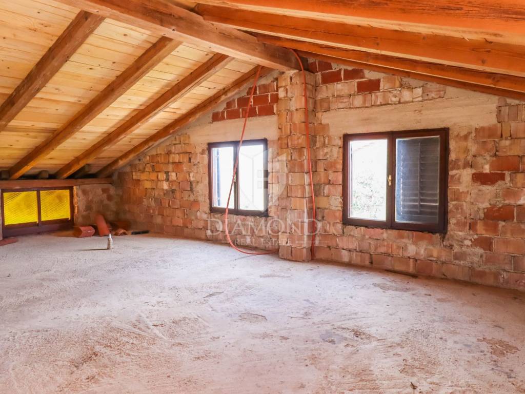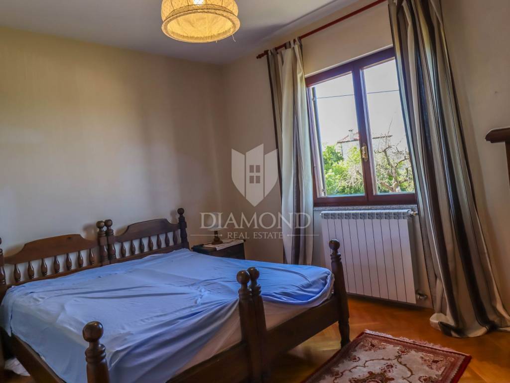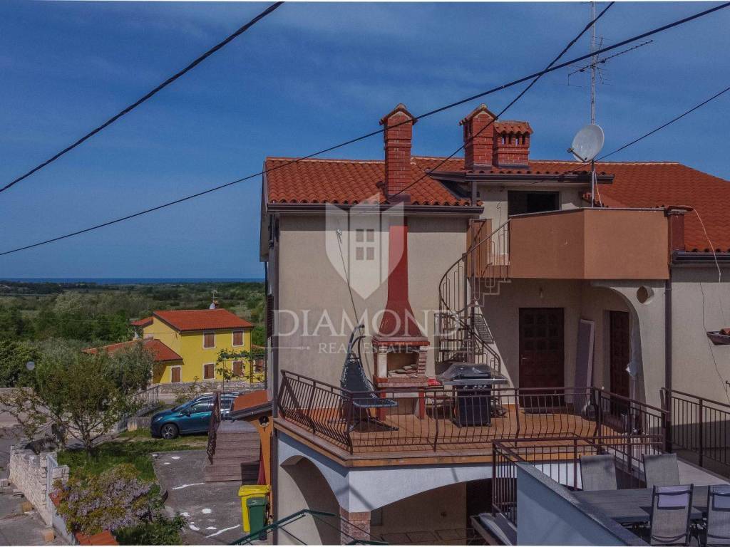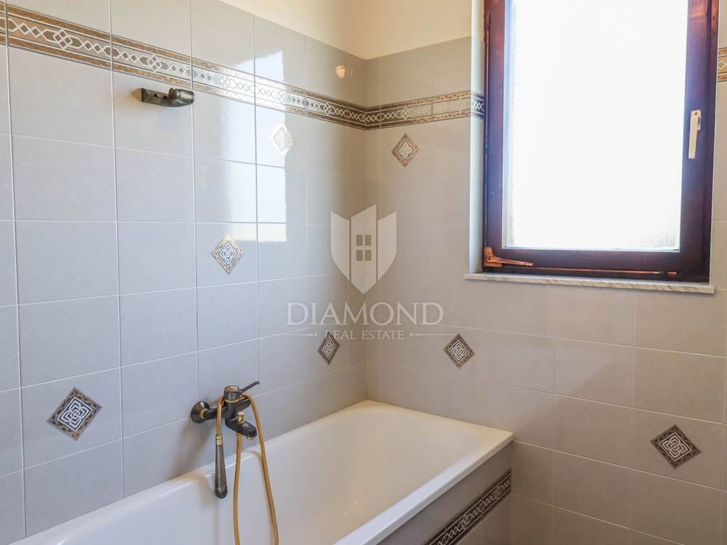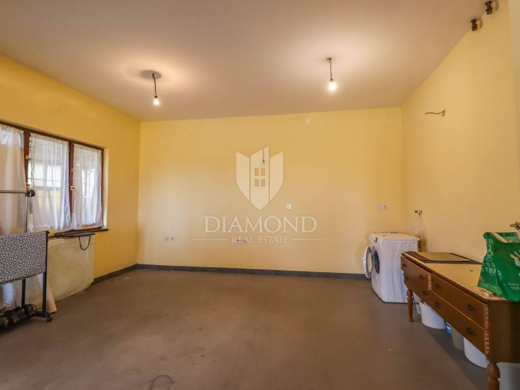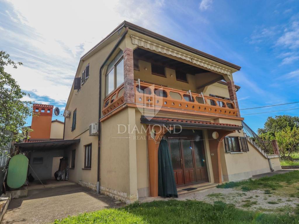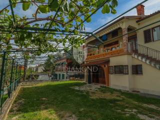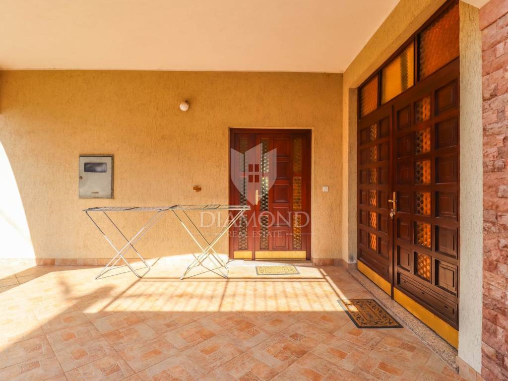 Ganz am Ortseingang von Brtonigla befindet sich dieses geräumige Einfamilienhaus mit einem umzäunten Garten von 760 m². Das Haus ist äußerst gut gebaut, gepflegt und daher sofort bezugsfertig! Das Dach wurde 2022 isoliert und saniert. Es besteht aus einem Erdgeschoss mit einer Bruttofläche von 137m2, einem ersten Stock und einem Dachgeschoss von 114m2. Im Erdgeschoss gibt es eine Taverne, ein Wohn- und Esszimmer, ein Schlafzimmer, ein Badezimmer, eine Küche, eine Garage und eine überdachte Terrasse. Es kann als separate Einheit fungieren. Eine Außentreppe führt in den ersten Stock und auf eine große überdachte Terrasse mit freiem Blick auf die blaue Adria und das Grün der umliegenden Olivenhaine. Die erste Etage besteht aus einem äußerst hellen Wohnzimmer, Esszimmer, Küche, Bad, zwei Schlafzimmern und einer Veranda, von der aus man auf den Dachboden gelangt. Im Dachgeschoss besteht die Möglichkeit, ein separates Studio-Apartment einzurichten.