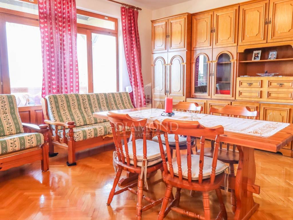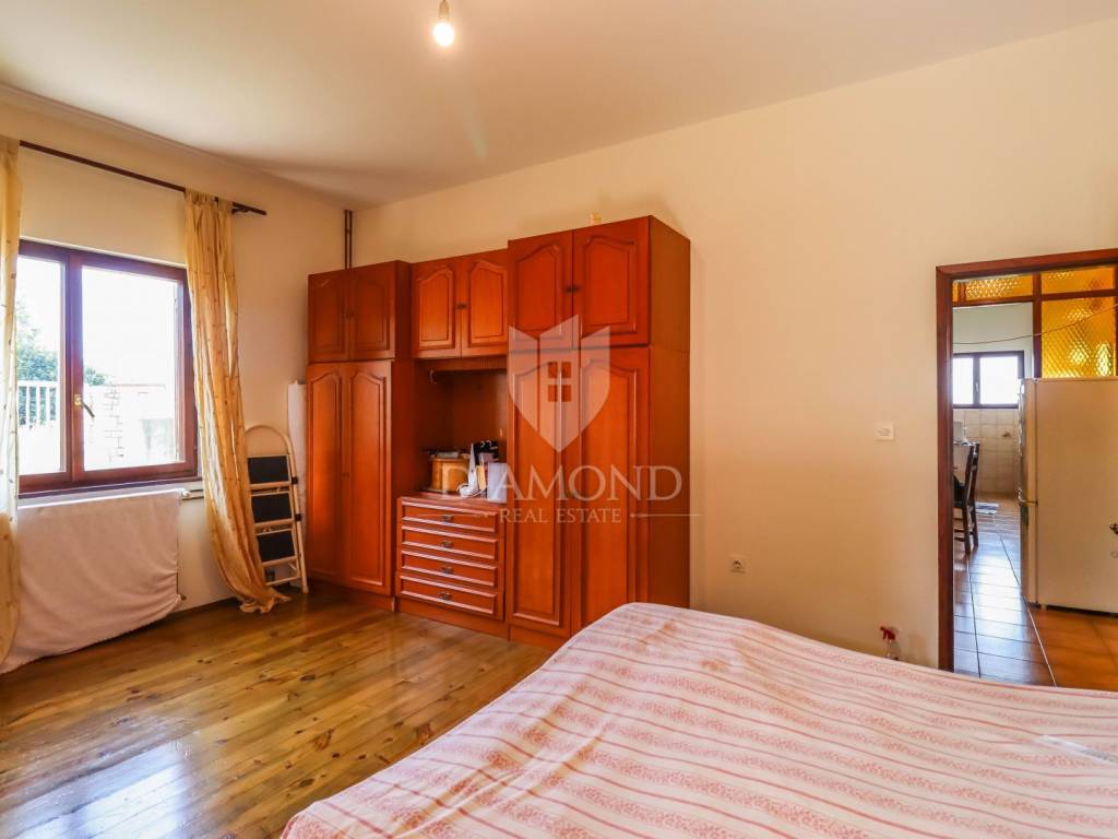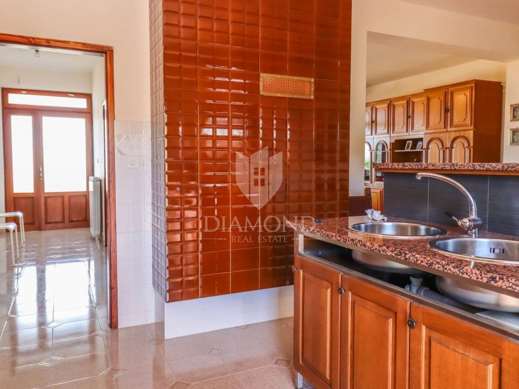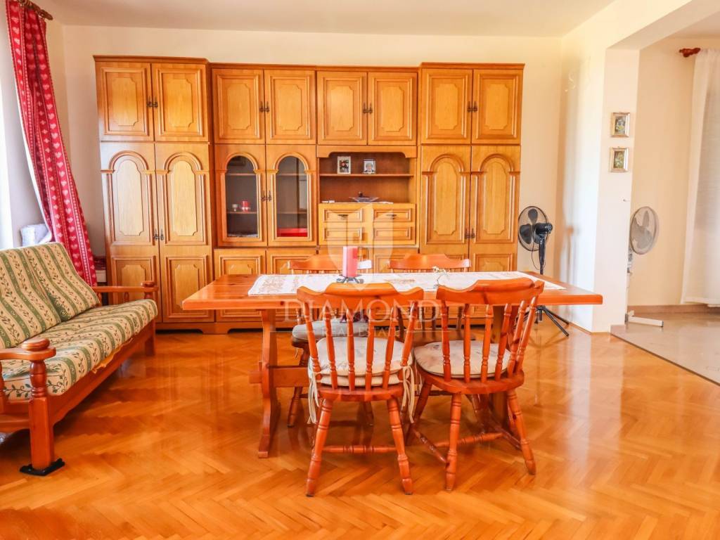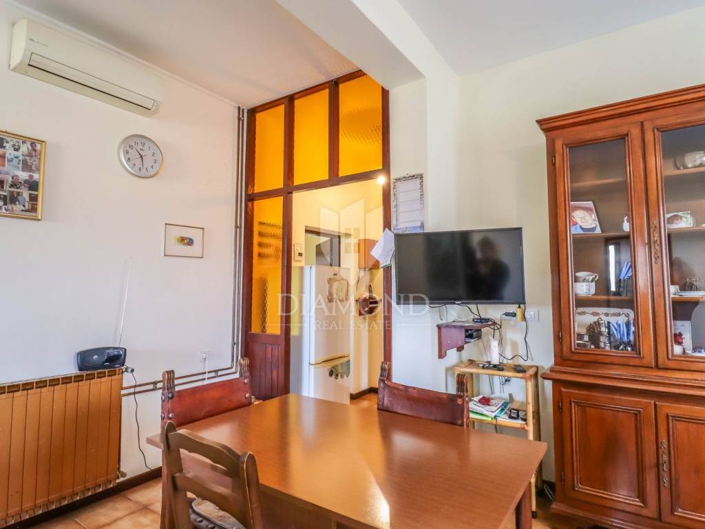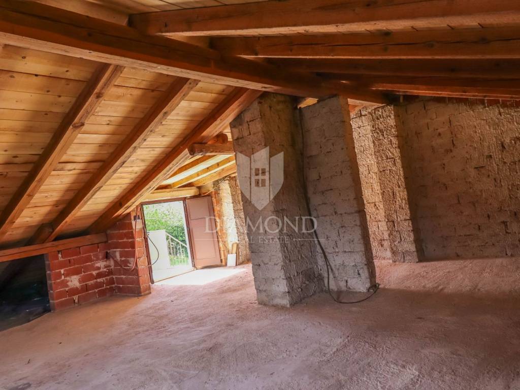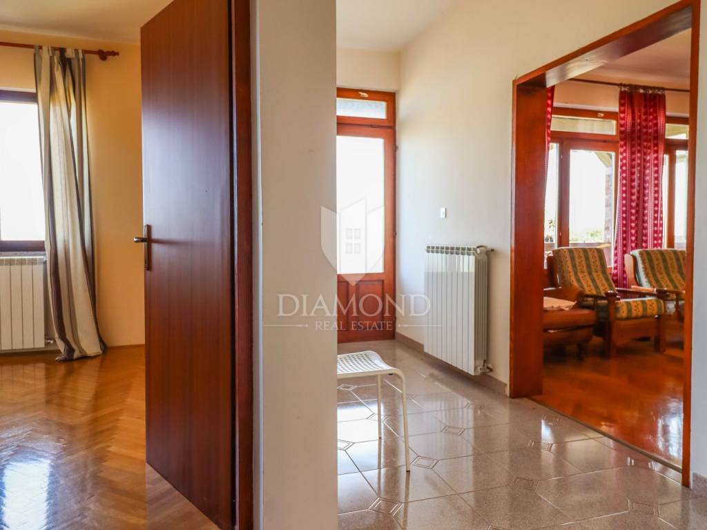 Ganz am Ortseingang von Brtonigla befindet sich dieses geräumige Einfamilienhaus mit einem umzäunten Garten von 760 m². Das Haus ist äußerst gut gebaut, gepflegt und daher sofort bezugsfertig! Das Dach wurde 2022 isoliert und saniert. Es besteht aus einem Erdgeschoss mit einer Bruttofläche von 137m2, einem ersten Stock und einem Dachgeschoss von 114m2. Im Erdgeschoss gibt es eine Taverne, ein Wohn- und Esszimmer, ein Schlafzimmer, ein Badezimmer, eine Küche, eine Garage und eine überdachte Terrasse. Es kann als separate Einheit fungieren. Eine Außentreppe führt in den ersten Stock und auf eine große überdachte Terrasse mit freiem Blick auf die blaue Adria und das Grün der umliegenden Olivenhaine. Die erste Etage besteht aus einem äußerst hellen Wohnzimmer, Esszimmer, Küche, Bad, zwei Schlafzimmern und einer Veranda, von der aus man auf den Dachboden gelangt. Im Dachgeschoss besteht die Möglichkeit, ein separates Studio-Apartment einzurichten.