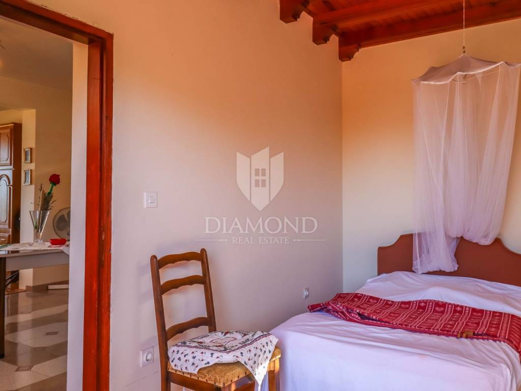 Das Haus bietet einen freien Blick auf das Meer und die umliegenden Olivenhaine und alle zum Leben notwendigen Annehmlichkeiten sind fußläufig erreichbar: Bäcker, Laden, Apotheke, Bank, Metzger, Post, Restaurants, Weingüter. Aufgrund seiner Lage, 10 Minuten von der Grenze und 5 Minuten von den Städten Umag und Novigrad entfernt, ist dieses Haus sowohl für das ganzjährige Wohnen als auch als Investition für touristische Zwecke ideal.