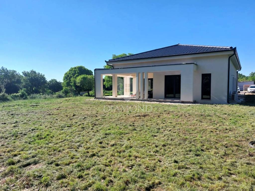 Na prodaju je novoizgrađena prizemnica površine 145 m², smještena na mirnoj lokaciji udaljenoj svega 10-ak minuta vožnje od Poreča i prvih plaža. Kuća je smještena na prostranoj okućnici od 1200 m² i nudi savršen spoj privatnosti i funkcionalnosti.
