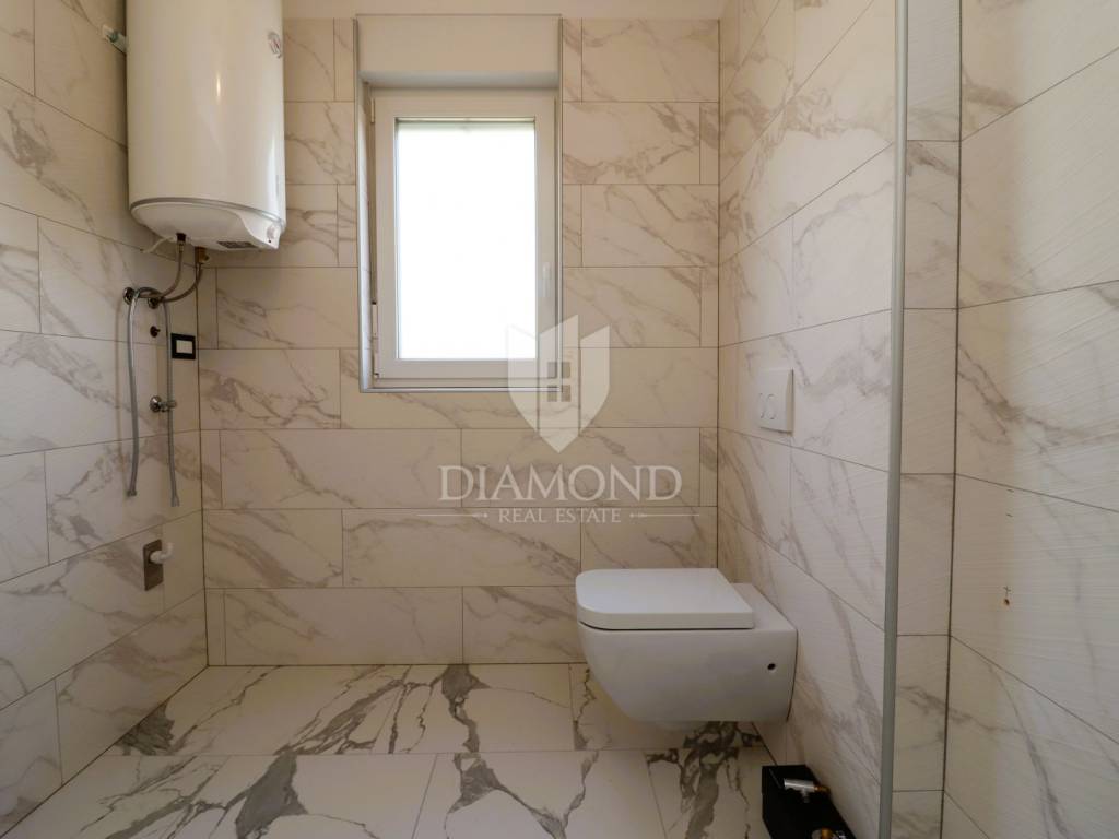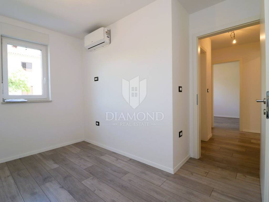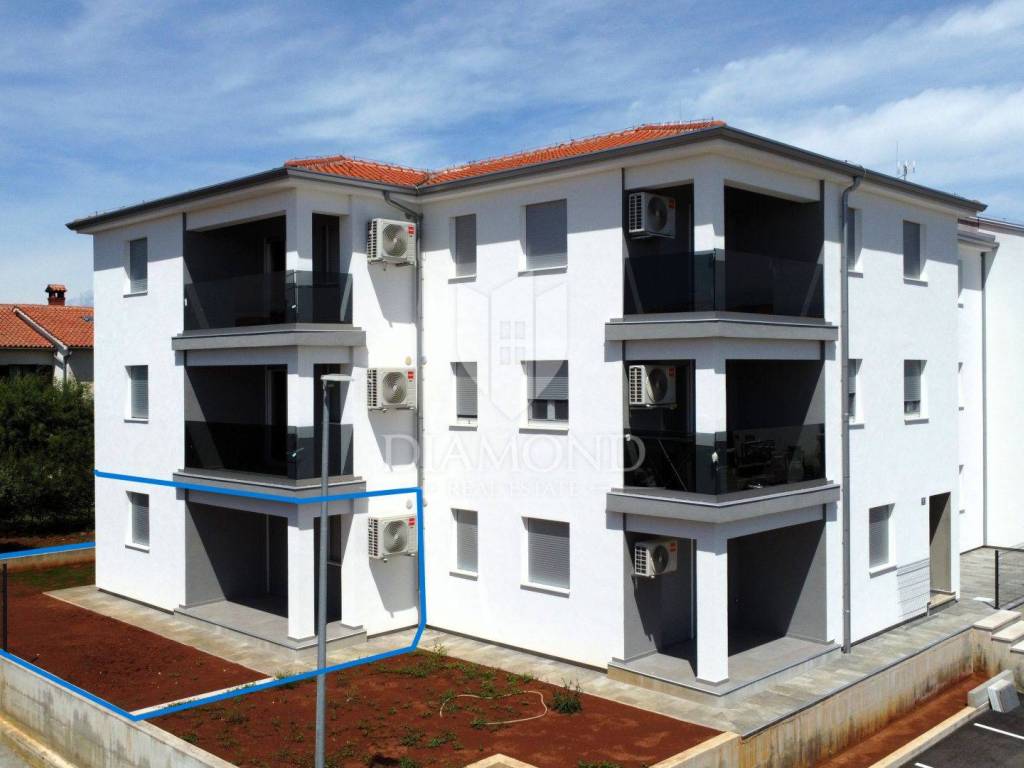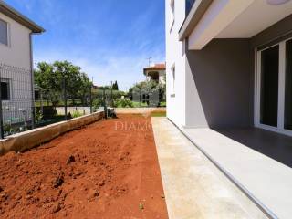 Poreč, Umgebung, Erdgeschosswohnung mit großem Garten! In ruhiger Lage, nur 7 Kilometer von der Stadt Poreč und ihren gepflegten Stränden entfernt, befindet sich ein modernes Wohngebäude mit insgesamt neun Wohnungen. Im Erdgeschoss des Gebäudes befindet sich eine geräumige und funktional eingerichtete Wohnung, die Komfort und Bequemlichkeit bietet und sich somit ideal für das Familienleben oder eine langfristige Mietinvestition eignet. Die Wohnung besteht aus einem hellen, offenen Wohnzimmer, das mit dem Esszimmer und der Küche verbunden ist, drei komfortablen Schlafzimmern, die ausreichend Platz für die Familie bieten, während das Badezimmer und die zusätzliche Toilette praktisch getrennt sind und so für zusätzliche Privatsphäre und Funktionalität sorgen. Das Wohnzimmer öffnet sich zu einer überdachten Terrasse, die zu einem großen privaten Garten von 180 m² führt, der sich in exklusivem Besitz befindet und der perfekte Ort für Outdoor-Aktivitäten, Kinderspiele, Gartenarbeit oder die Aufstellung zusätzlicher Einrichtungen wie eines Grills oder eines Swimmingpools ist. Die Wohnung ist in jedem Zimmer mit einer Klimaanlage ausgestattet, die dank hochwertiger Bauweise und hervorragender Wärmedämmung das ganze Jahr über für angenehme Temperaturen sorgt, während das Badezimmer für zusätzlichen Komfort mit einer Fußbodenheizung ausgestattet ist. Sicherheitstüren sorgen für zusätzliche Sicherheit und die Wohnung verfügt bereits über einen verlegten Küchenboden und eine komplette Sanitärausstattung, was den Einzug deutlich erleichtert. Zur Wohnung gehört außerdem ein eigener PKW-Stellplatz und die unmittelbare Nähe zu allen wichtigen Einrichtungen – wie Einkaufsmöglichkeiten, Restaurants, Schulen, Kindergärten und Kinderspielplätzen – bestätigt die Attraktivität dieser Immobilie für den Alltag. Diese Wohnung stellt eine hervorragende Gelegenheit für diejenigen dar, die ein hochwertiges Zuhause in der Nähe aller Annehmlichkeiten suchen, aber auch für Investoren, die eine sichere und langfristige Mietinvestition in einer der begehrtesten Gegenden Istriens suchen.