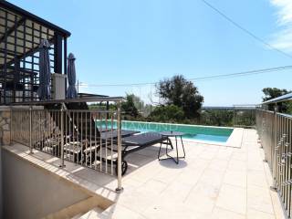 Das Anwesen befindet sich auf einem 685 m² großen Grundstück, mit einer Gesamtwohnfläche von ca. 300 m² auf drei Etagen. Im Erdgeschoss befinden sich zwei separate Apartments, jeweils mit eigenem Eingang, Küche, Wohnzimmer, Schlafzimmer und Bad, mit direktem Zugang zur Terrasse und zum Garten. Im Obergeschoss befindet sich eine großzügige Wohnung, ideal für das Familienleben, mit geräumigem Wohnzimmer, Küche mit Essbereich, drei Schlafzimmern, mehreren Badezimmern und Terrassen mit herrlichem Blick auf das Meer und die umliegende Natur.
