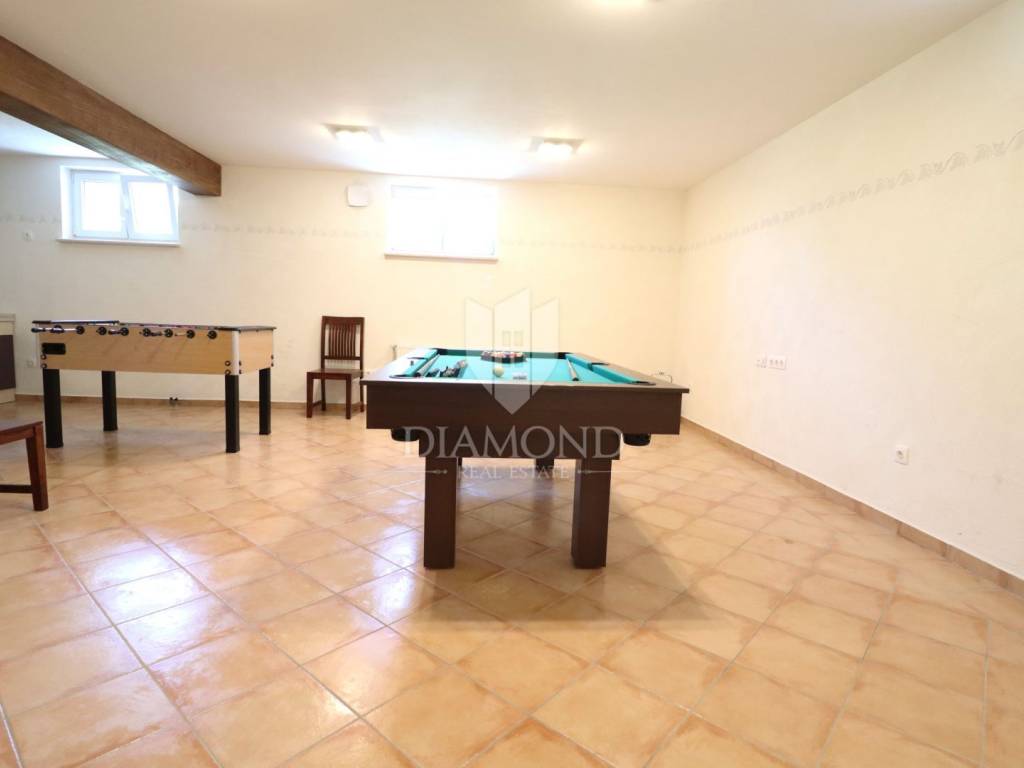 Das Untergeschoss bietet zusätzlichen Mehrwert – mit einer authentischen istrischen Taverne mit Kamin, einem großen Wasch- oder Mehrzweckraum, einem Abstellraum und einem Technikraum. Das gesamte Haus ist mit istrischem Naturstein verkleidet, was für mediterranen Charme und Wärme sorgt.