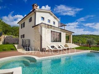 Labin, Umgebung, Villa mit bezauberndem Meerblick In der Nähe von Labin, in einem kleinen Dorf, befindet sich diese schöne Villa mit bezauberndem Meerblick. Es ist nur wenige Minuten vom Meer und den Stränden entfernt. Die Villa hat eine Gesamtfläche von 240 Quadratmetern, besteht aus einem Untergeschoss, Erdgeschoss und Obergeschoss. Im Untergeschoss befindet sich eine Küche, ein Esszimmer mit Kamin und eine Toilette. Das Erdgeschoss verfügt über eine ausgestattete Küche mit Essbereich, ein Wohnzimmer mit Kamin und großen Glaswänden sowie ein Badezimmer. Im Obergeschoss befinden sich drei Schlafzimmer mit jeweils eigenem Bad und Terrasse. Das Wohnzimmer öffnet sich auf eine überdachte Terrasse mit Grill und Außenküche. Erfrischung von der Sommerhitze finden Sie im Pool mit Hydromassage. Egal in welchem Zimmer Sie sich in dieser wunderschönen Villa befinden, der Blick reicht immer bis zum Meer und zum Hafen. Es ist komplett und modern eingerichtet und wird als solches verkauft. Es gibt Geschäfte und Restaurants in der Nähe. Diese Villa befindet sich in einer ruhigen und einzigartigen Lage, sie befindet sich in einer touristischen Vermietung, so dass der zukünftige Eigentümer ein gutes Vermietungsgeschäft übernehmen kann.