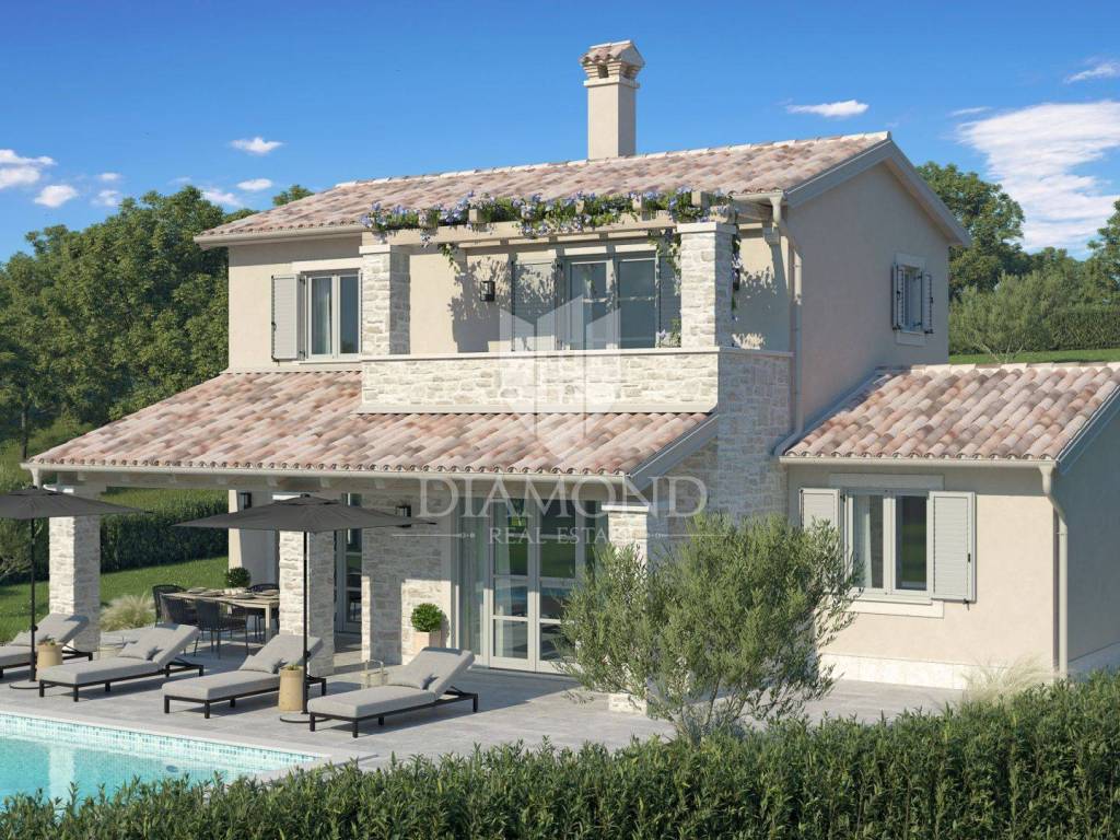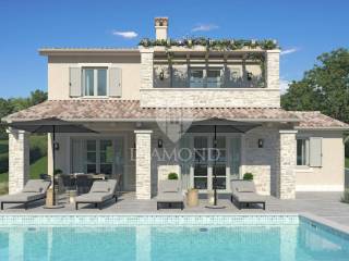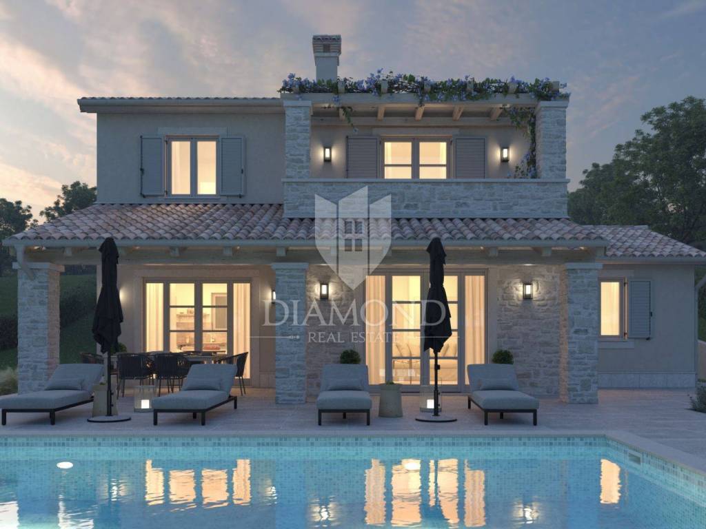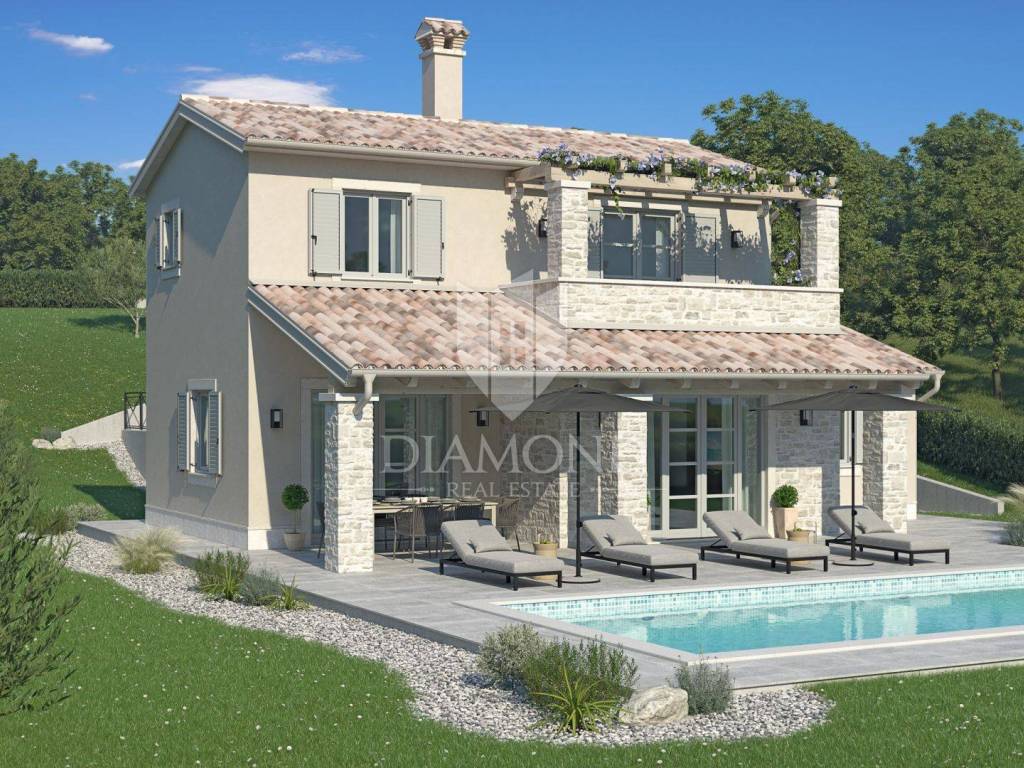 Wir verkaufen ein neues Ferienhaus mit Swimmingpool, das Haus liegt in der Nähe der Stadt Labin an der Ostküste Istriens, die Lage des Hauses bietet Ruhe und Privatsphäre und einen schönen Blick auf die umliegende Natur. Das Haus wurde im mediterranen Stil eines Ferienhauses erbaut. Es besteht aus einem großen Wohnraum im Erdgeschoss, der eine Küche, ein Wohnzimmer und ein Esszimmer umfasst, im Erdgeschoss befindet sich auch ein Schlafzimmer mit einem Badezimmer, im ersten Stock befinden sich zwei weitere Schlafzimmer mit angeschlossenen Badezimmern. Die überdachte Außenterrasse bietet viel Platz zum Sitzen und im zentralen Teil des Gartens befindet sich ein großer Swimmingpool mit einem eingerichteten Bereich zum Sonnenbaden.
