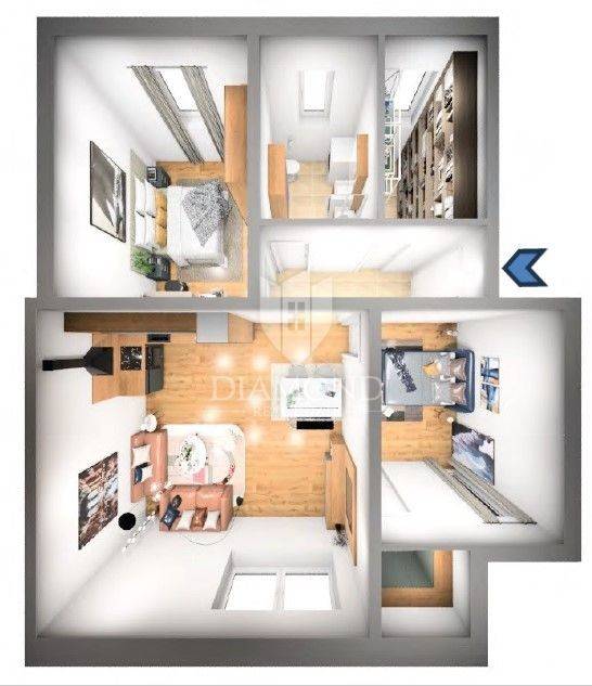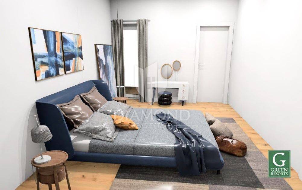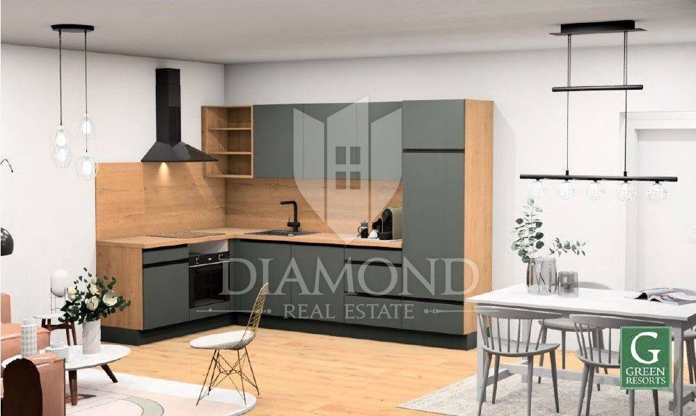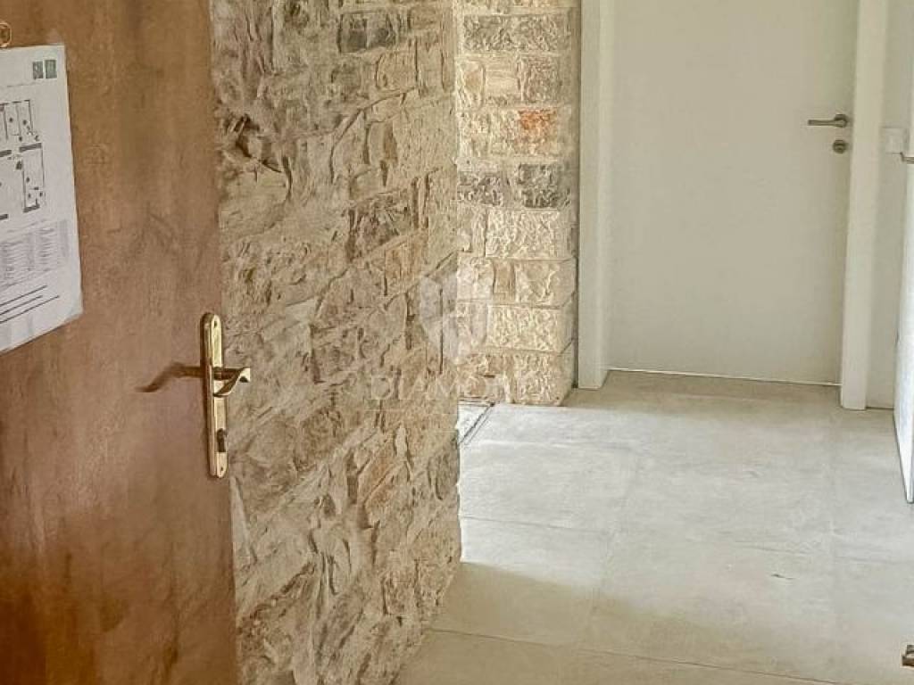 Die Wohnung befindet sich im Erdgeschoss eines kleineren Gebäudes mit insgesamt 8 Wohnungen. Die Gesamtfläche der Wohnung beträgt 79 m2. Es besteht aus einem Flur, einem Wohnzimmer mit Küche und Esszimmer, einem Badezimmer, einem Abstellraum, 2 Schlafzimmern und einem weiteren Raum, der als Kinderzimmer, Arbeitszimmer oder Abstellraum genutzt werden kann. Vom Wohnzimmer aus haben Sie Zugang zum 20 m2 großen Garten. Die Wohnung wird mit hochwertigen Materialien mit Details aus Stein und Holz renoviert, was ihr einen besonderen autochthonen Stil verleiht. Geheizt und gekühlt wird mit Klimaanlagen, außerdem gibt es einen Kamin und auf Wunsch kann mit einem Holz- oder Pelletofen geheizt werden. Es verfügt über 1 Parkplatz.
