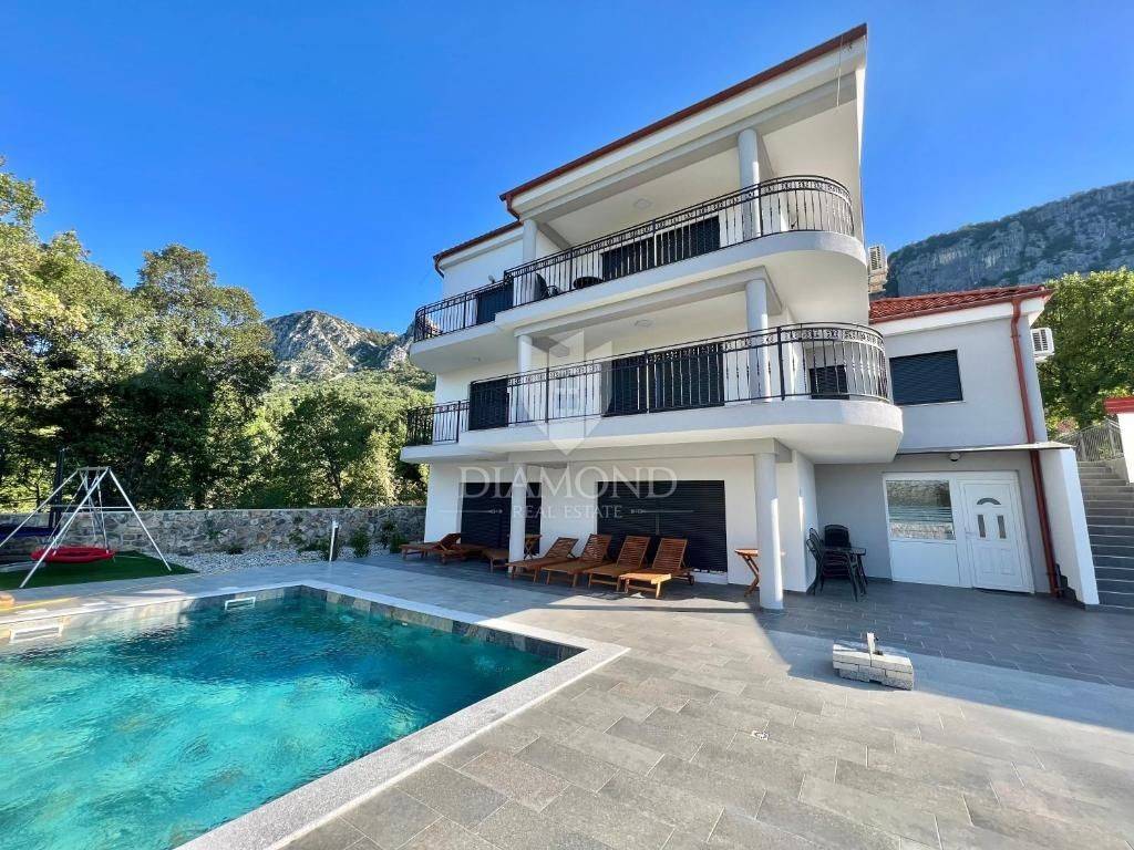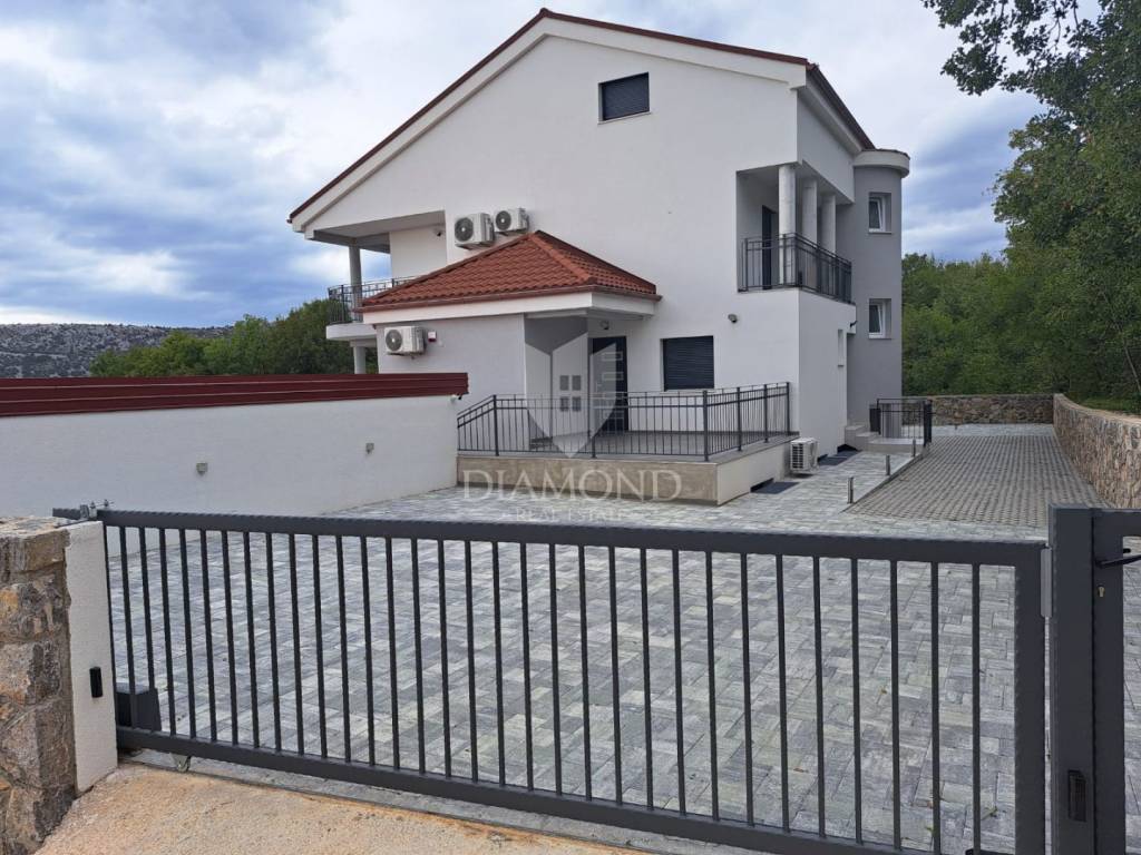 In einem modernen Haus, das 2023 in einer ruhigen Gegend von Bribir erbaut wurde, befinden sich insgesamt fünf Wohnungen, von denen vier zum Verkauf stehen. Die Immobilie bietet Parkplätze auf beiden Seiten des Gebäudes und damit ausreichend Platz für Bewohner und Besucher. Auf dem ca. 700 m² großen Grundstück gibt es einen Pool mit großzügiger Sonnenterrasse sowie eine Außenküche mit großem Tisch – ideal zum Entspannen und geselligen Beisammensein.