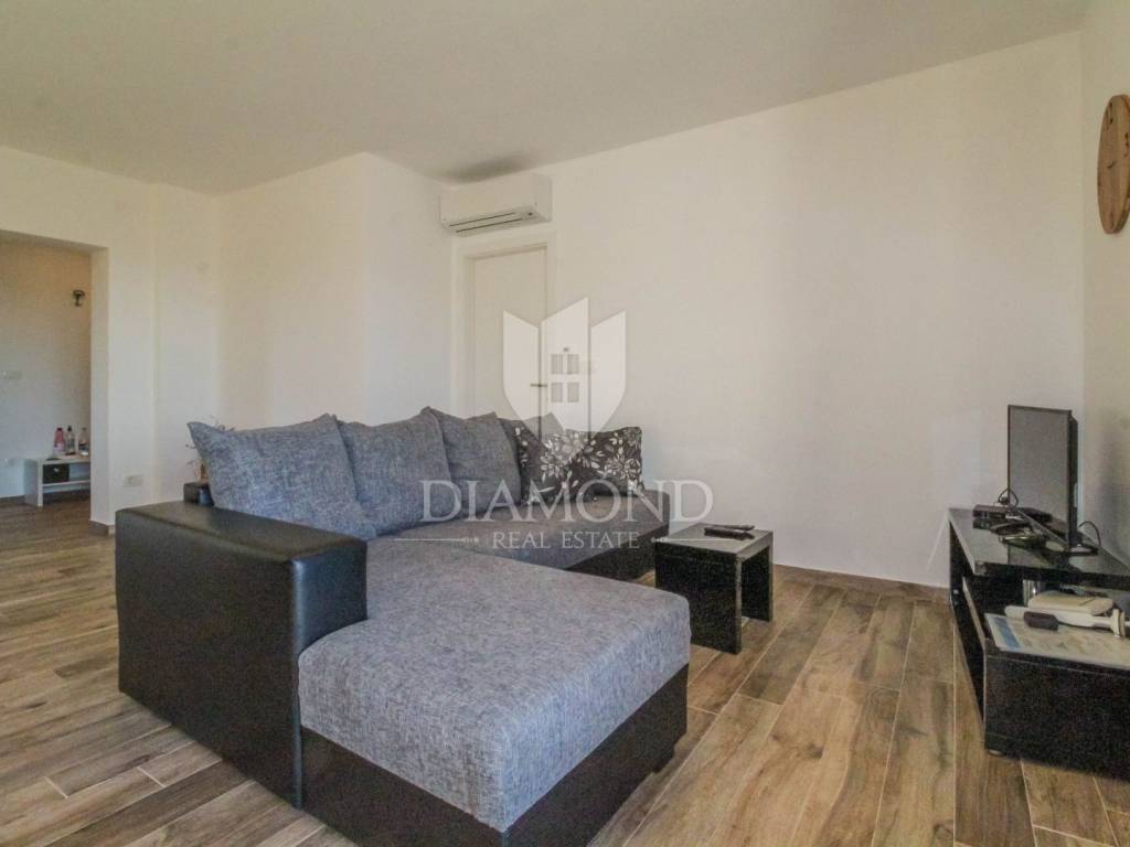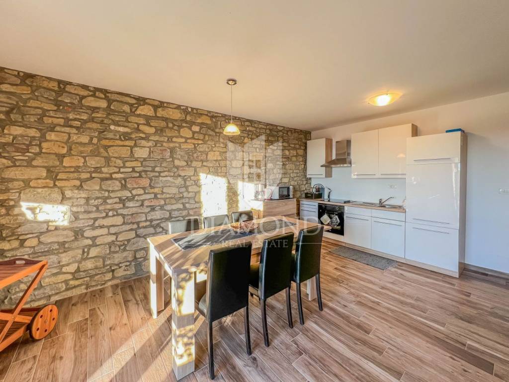 Es ist ein Reihenhaus mit einer Fläche von 227 m2. Das Haus erstreckt sich über Erdgeschoss, 1. Stock und 2. Stock. Das Erdgeschoss befindet sich im Rohbau und kann je nach Wunsch des Käufers fertig gestellt und möbliert werden. Das Erdgeschoss führt zu einer großzügigen Terrasse. Auch aus dem Erdgeschoss hat man eine schöne Aussicht. Im ersten Stock befindet sich eine möblierte Wohnung, bestehend aus einem Wohnzimmer mit Küche und Esszimmer, 2 Schlafzimmern, einem Badezimmer und einem Flur. Das Wohnzimmer führt zu einem geräumigen Balkon, auf dem Sie den herrlichen Blick auf das Meer und die wunderschöne Landschaft Istriens genießen können. Im 2. Obergeschoss befindet sich eine weitere Wohnung im Rohbau. Durch die Fertigstellung des Erdgeschosses und des 2. Obergeschosses könnte der neue Eigentümer potenziell 3 separate Wohneinheiten erhalten.