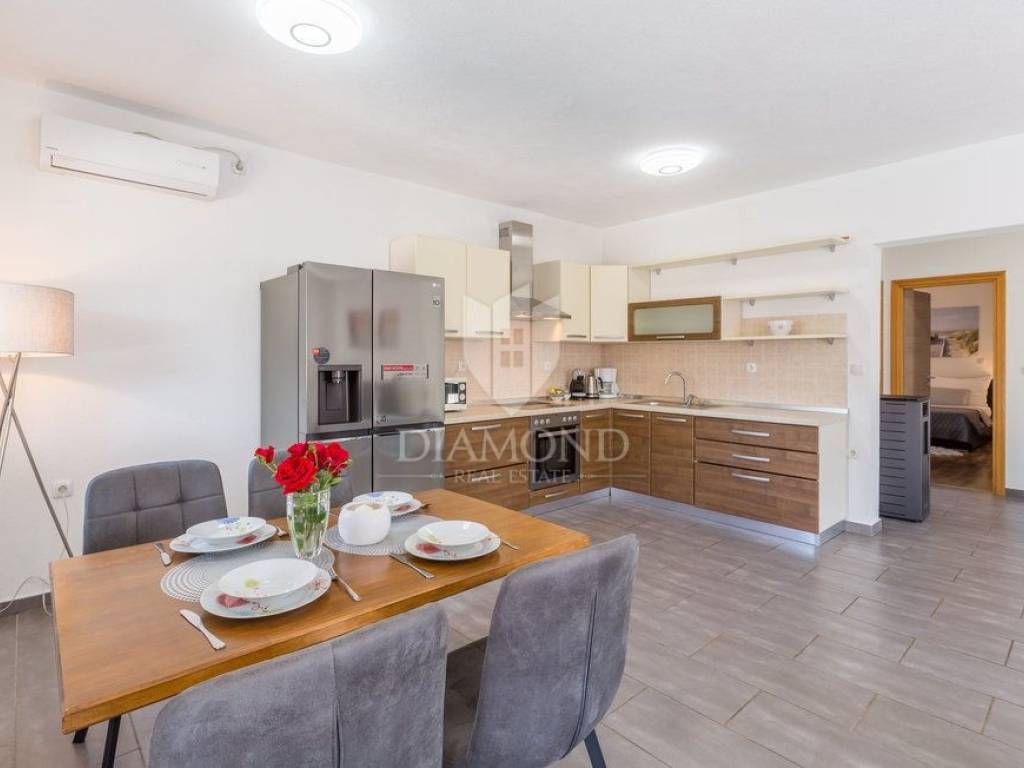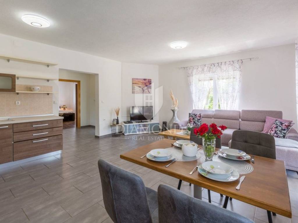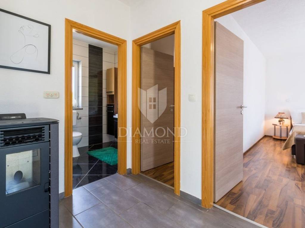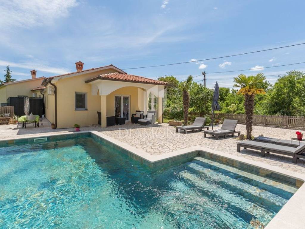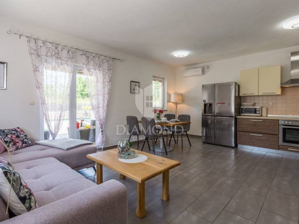 Wir verkaufen ein sehr schönes, gemütliches und gut eingerichtetes Haus mit Schwimmbad in der Nähe von Labin. Die Lage ist super, denn mit dem Auto braucht man 5 Minuten in die Innenstadt und ist trotzdem in Ruhe. Das Haus liegt auf einem komplett eingezäunten Grundstück von 400 qm. Das Konzept sieht ein modernes einstöckiges Haus vor, das mit einem offenen Raum ausgestattet ist, in dem sich Küche, Esszimmer und Wohnzimmer befinden und der von der überdachten Terrasse aus zugänglich ist, die zum Swimmingpool führt. Außerdem gibt es zwei Schlafzimmer und ein Badezimmer. Rund um den Pool gibt es einen Steinstrand und einen weiteren Außenkamin, an dem Sie verschiedene Gerichte zubereiten und Erinnerungen an dieses Haus schaffen können.