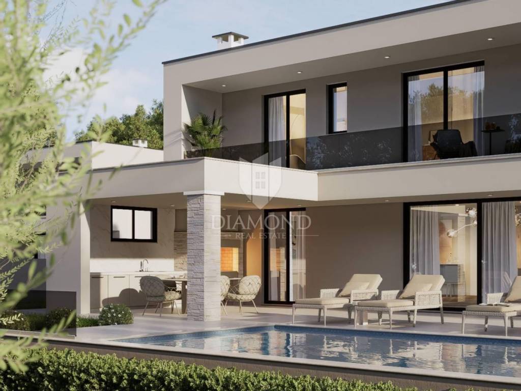 Labin, Umgebung, ein im Bau befindliches Haus in hervorragender Lage steht zum Verkauf. Dieses zweistöckige Haus mit schönem Konzept hat eine Gesamtwohnfläche von 170 m2. Es besteht aus drei Schlafzimmern mit eigenen Bädern, einem geräumigen Wohnbereich mit Küche, Esszimmer und Wohnzimmer sowie einer Gästetoilette, Speisekammer und Abstellraum. Der Wohnbereich ist mit einer überdachten Außenterrasse und einem Garten verbunden, in dem ein Swimmingpool geplant ist. Die Rohbauphase dieses Hauses umfasst vorbereitende Arbeiten, darunter Aushub und Einebnung des Geländes, Bau des Fundaments und der Grundmauer, Maurerarbeiten einschließlich äußerer und innerer Trennwände, Dacharbeiten mit Zinnoberflächen und Installation von Außenschreinereiarbeiten.
