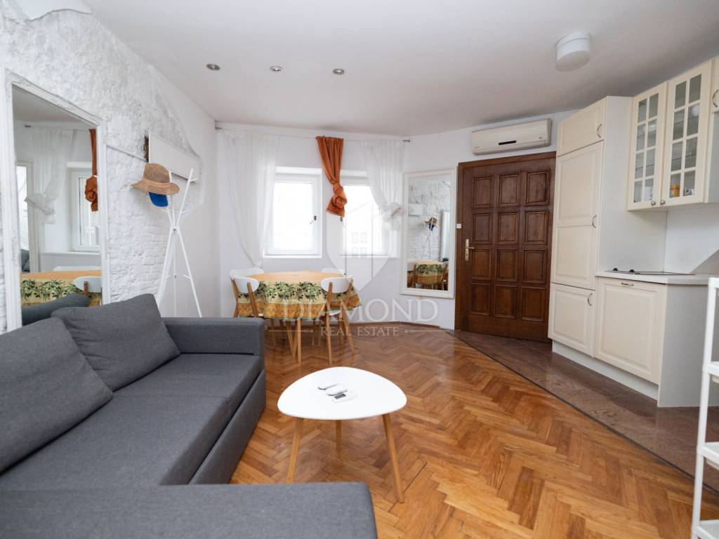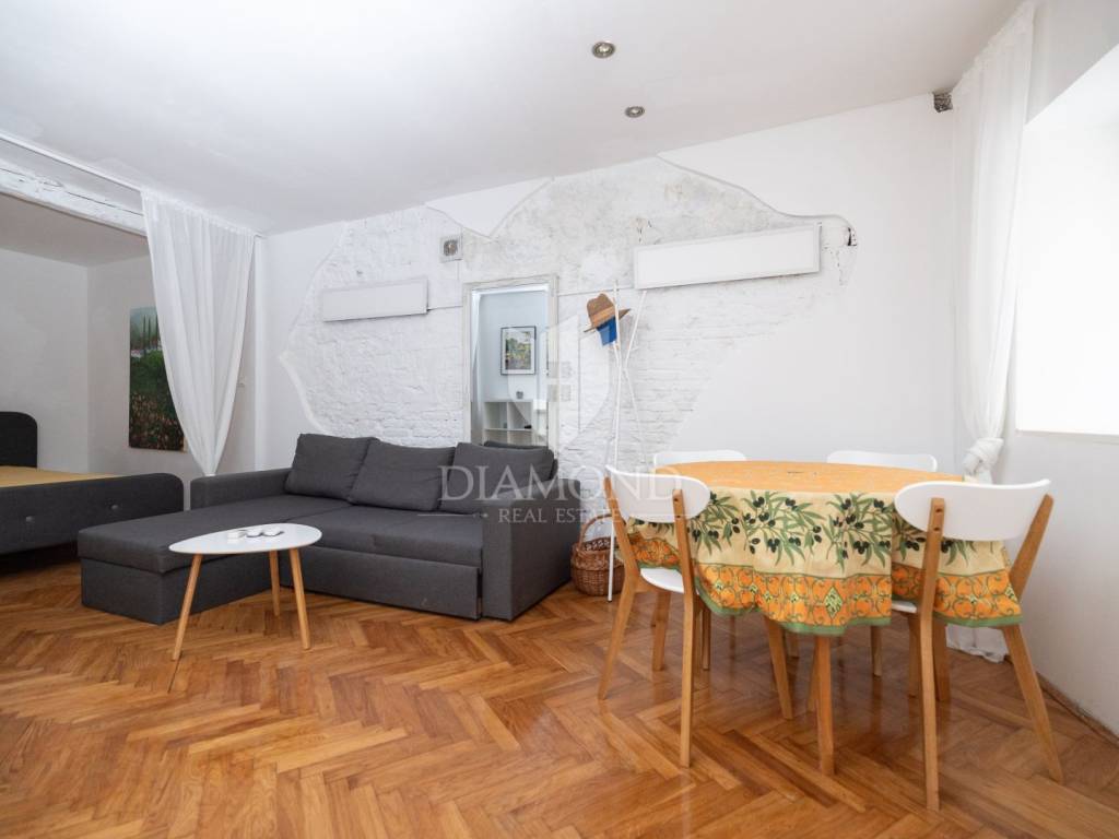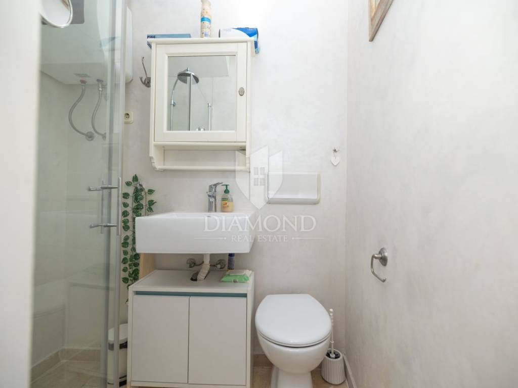 Die Wohnung befindet sich im Erdgeschoss eines authentischen Steingebäudes, nur wenige Schritte vom Hauptplatz und weniger als 100 Meter vom Meer entfernt. Die Lage ist äußerst attraktiv – Restaurants, Galerien, Geschäfte und das typische Flair von Rovinj liegen in unmittelbarer Nähe – und dennoch befindet sich die Wohnung in einer ruhigen Straße, die Ruhe und Erholung mitten im Stadtzentrum bietet.