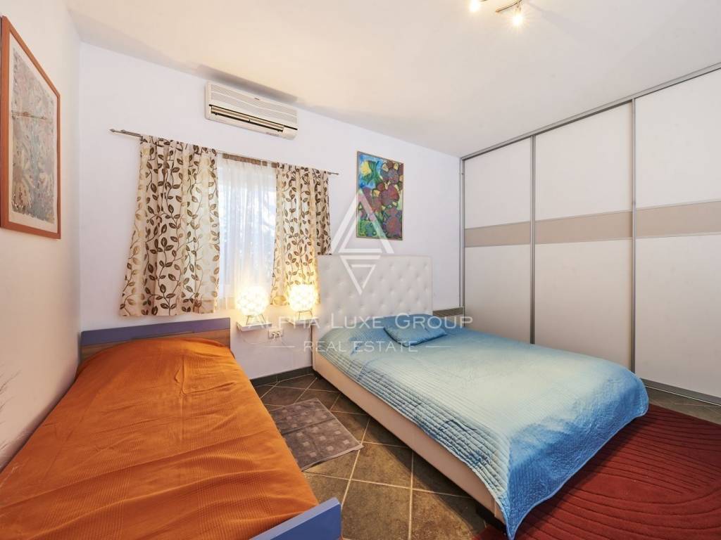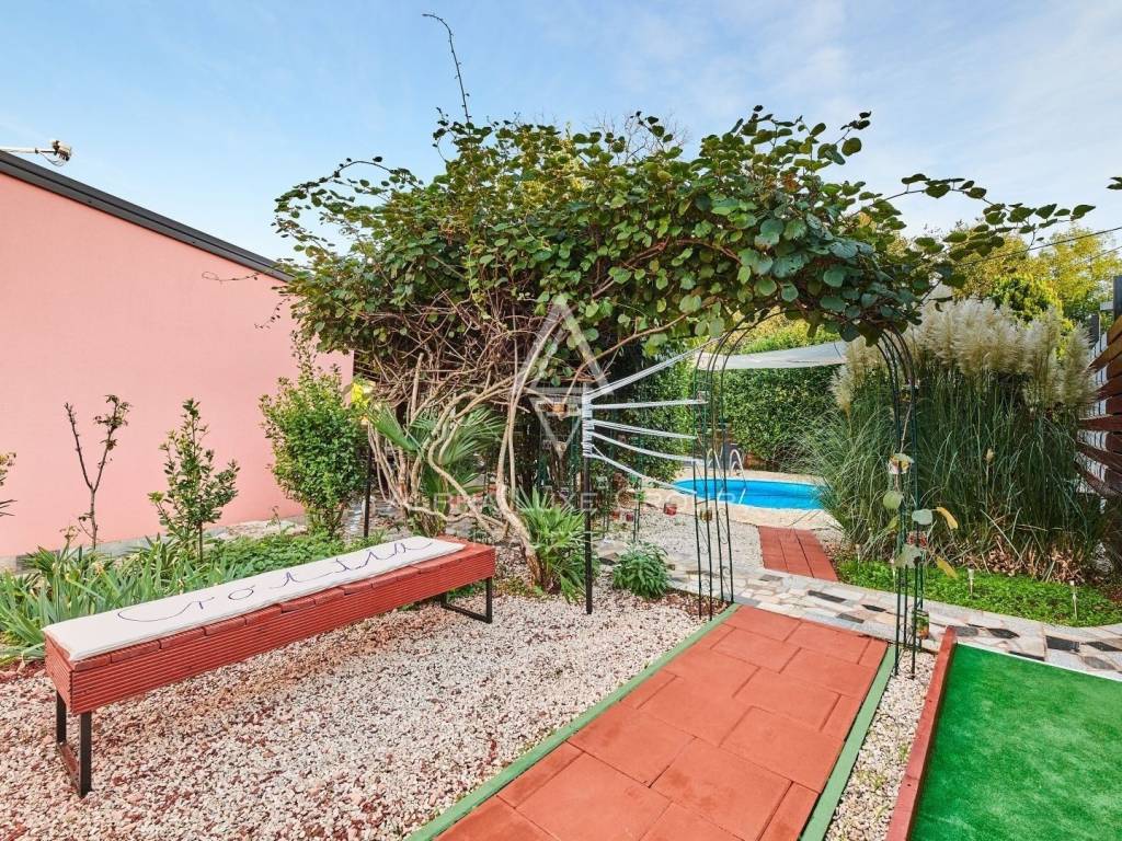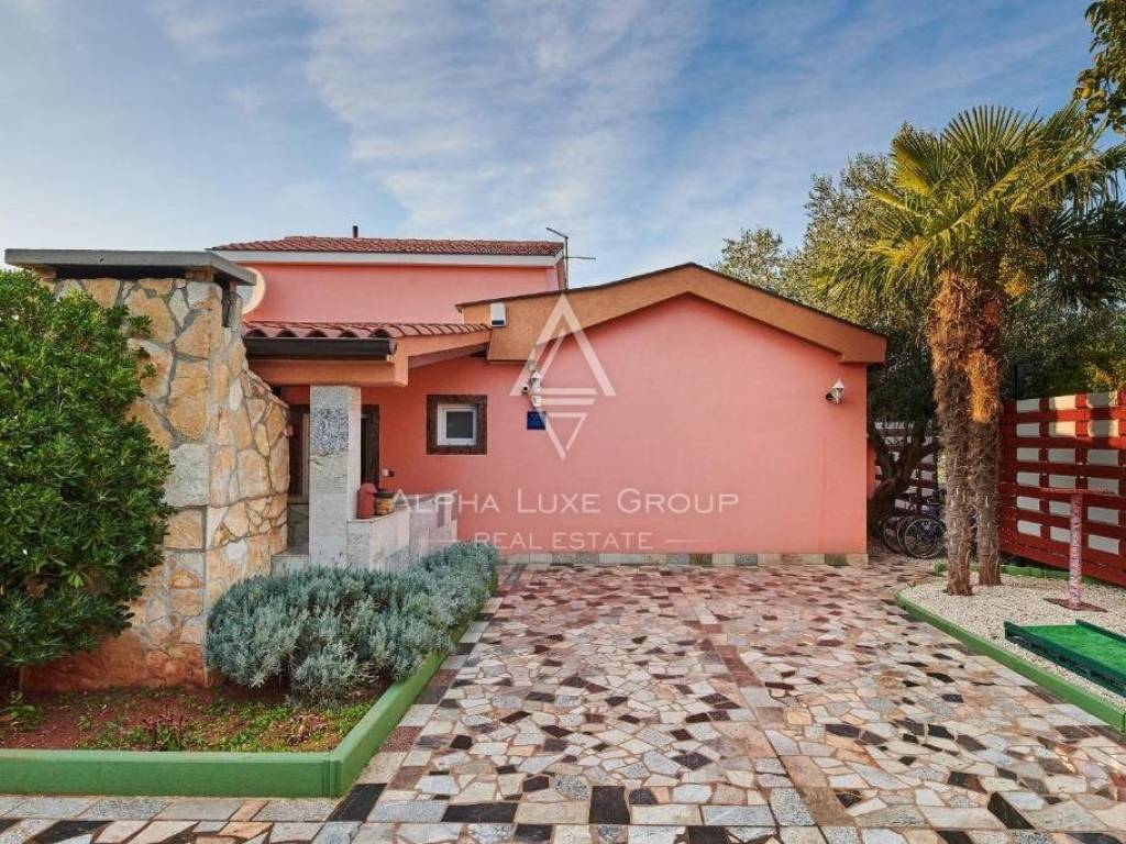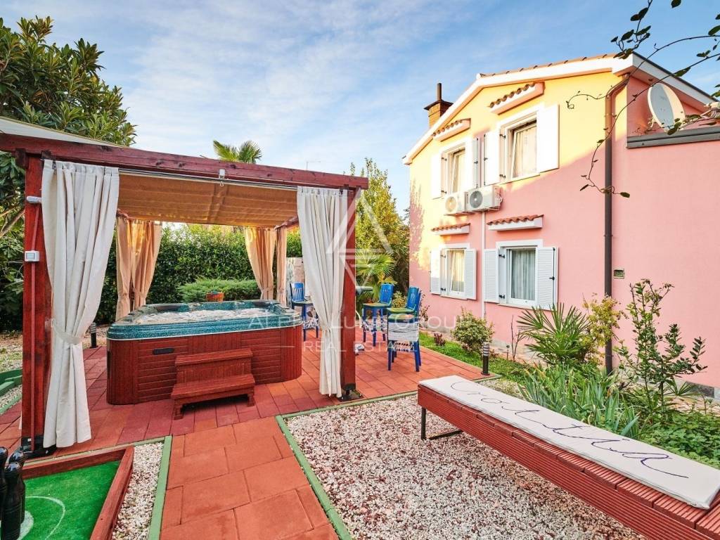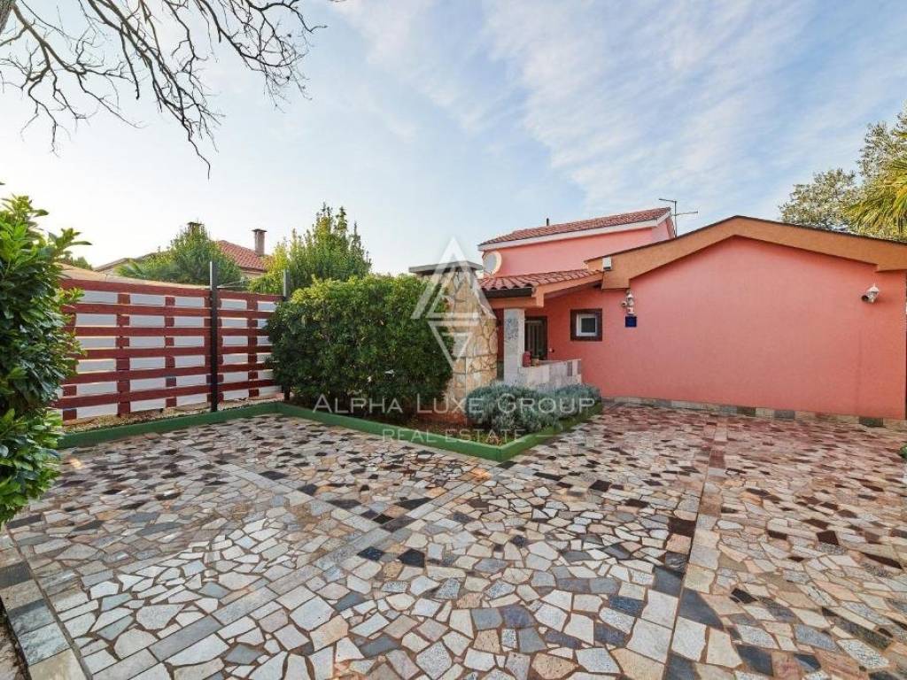 In der Nähe von Umag liegt diese wunderschöne Villa, die ein ruhiges Leben im Herzen von Istrien bietet. Auf einem Grundstück von 676 m² befindet sich ein Wohnbereich von 168 m², der Eleganz und Funktionalität vereint. Das Erdgeschoss umfasst ein geräumiges Wohnzimmer mit Essbereich, eine voll ausgestattete Küche, zwei Schlafzimmer und zwei Badezimmer. Im Obergeschoss befinden sich zwei weitere Schlafzimmer und ein Badezimmer.