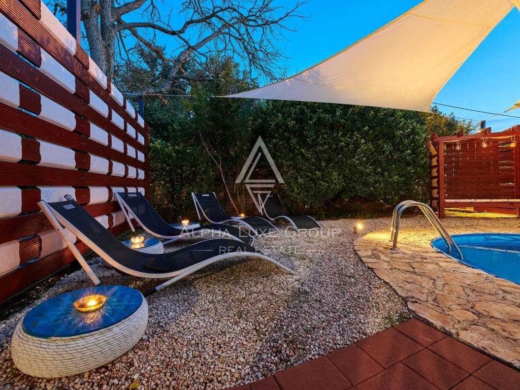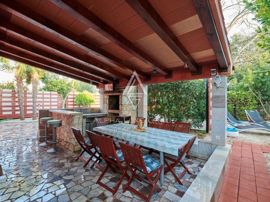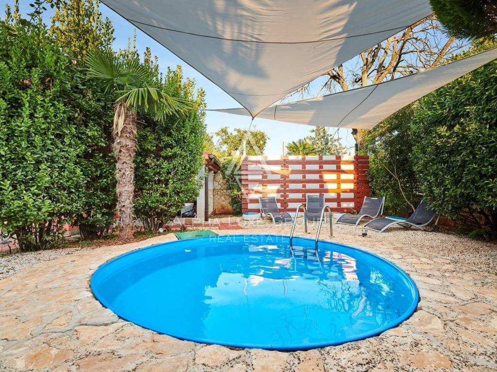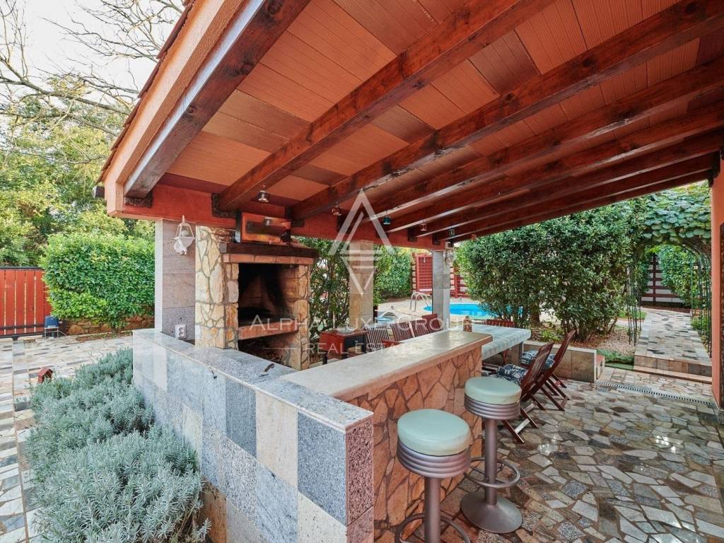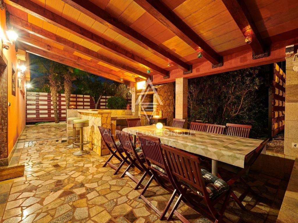 In der Nähe von Umag liegt diese wunderschöne Villa, die ein ruhiges Leben im Herzen von Istrien bietet. Auf einem Grundstück von 676 m² befindet sich ein Wohnbereich von 168 m², der Eleganz und Funktionalität vereint. Das Erdgeschoss umfasst ein geräumiges Wohnzimmer mit Essbereich, eine voll ausgestattete Küche, zwei Schlafzimmer und zwei Badezimmer. Im Obergeschoss befinden sich zwei weitere Schlafzimmer und ein Badezimmer.
