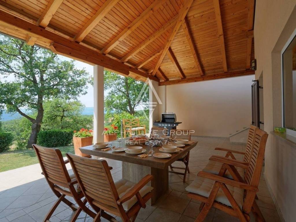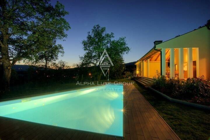 In der idyllischen Kulisse von Buzet in Istrien, bekannt als die Stadt der Trüffel, befindet sich eine moderne Villa - ein Zeugnis eleganten Wohnens. Diese preisgekrönte Villa mit 285m² Wohnfläche, zuzüglich einer 36m² Garage und einem Keller, liegt auf einem beeindruckenden 3030m² großen Grundstück. Buzet, umgeben von üppigen Hügeln und historischen Steinmauern, ist berühmt für seine unberührte Natur und reiche Gastronomie, insbesondere für Trüffel aus den Wäldern des Mirna-Tals.