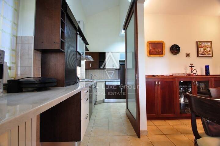 Die Villa erstreckt sich über zwei Ebenen, mit einem Keller, der eine traditionelle istrische Taverne mit offenem Kamin beinhaltet - perfekt für gemütliche Zusammenkünfte. Das Erdgeschoss bietet eine voll ausgestattete Küche mit Essbereich, ein Wohnzimmer, das zu einer 50m² großen überdachten Terrasse führt, ein Schlafzimmer mit en-suite Hydromassage-Bad, einen Abstellraum und eine Toilette. Im Obergeschoss befinden sich drei Schlafzimmer, ein Arbeitszimmer, zusätzliche Abstellräume, zwei Bäder und eine überdachte Terrasse. Hochwertige Möbel, hervorragende Ausstattung und Zentralheizung garantieren höchsten Komfort.