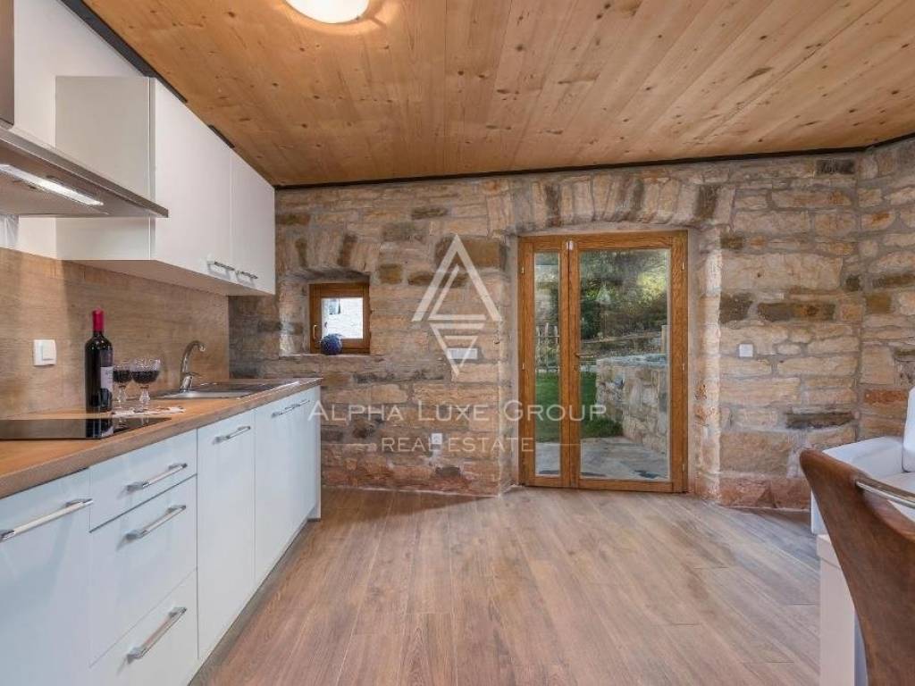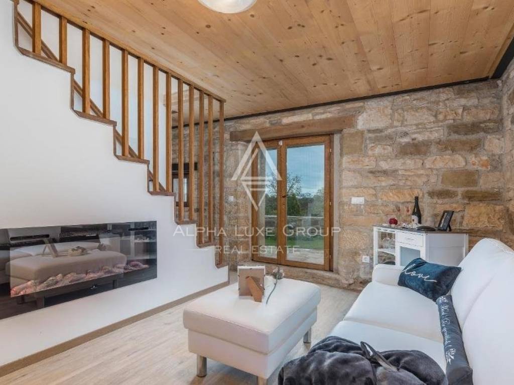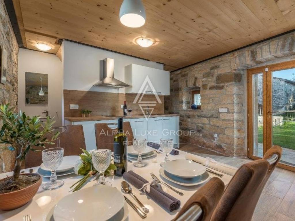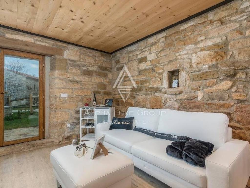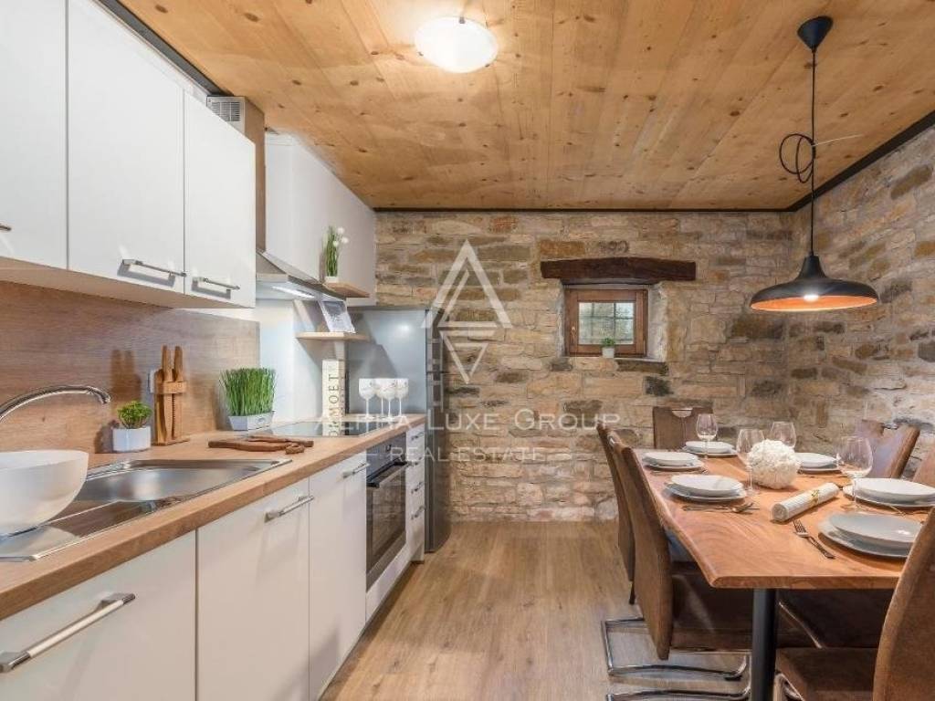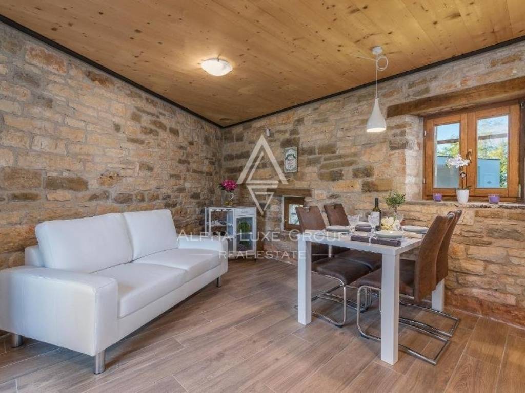 Dies ist eine seltene Immobilie auf dem Markt, erbaut im Jahr 1846, und bei einer Komplettrenovierung im Jahr 2020 wurden alle Details des einheimischen istrischen Hauses erhalten, was den Charme dieser Immobilie ausmacht. Die erste Wohnung hat eine Fläche von 60,24 m2, inklusive Küche, Esszimmer, Toilette und Wohnzimmer, mit Zugang zu einem Garten von ca. 30 m2. Über die Innentreppe gelangten wir in die Etage mit zwei Schlafzimmern und einem Badezimmer.