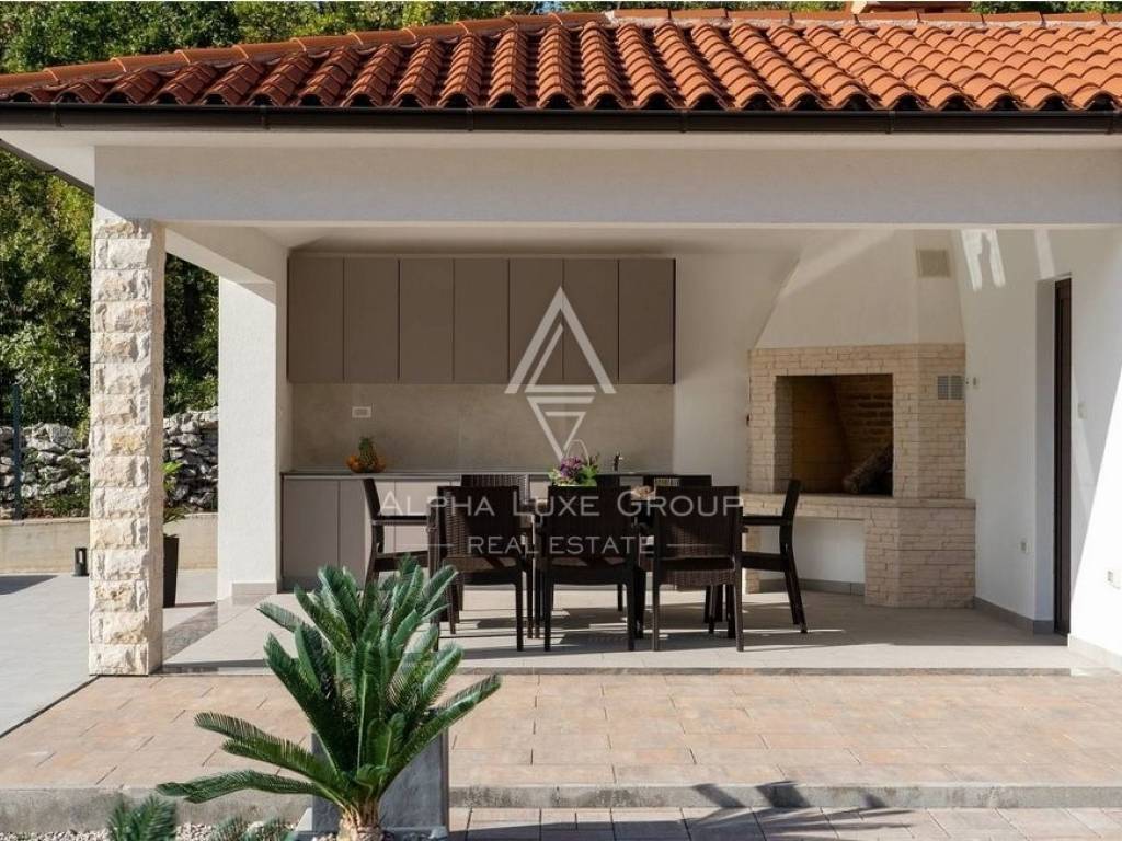 Gelegen in einer ruhigen Hanglage oberhalb von Rabac, ist dieses luxuriöse Ferienhaus ideal für diejenigen, die die Stille und natürliche Umgebung schätzen, mit den schönen Stränden von Rabac und den städtischen Annehmlichkeiten von Labin nur eine kurze Autofahrt entfernt.