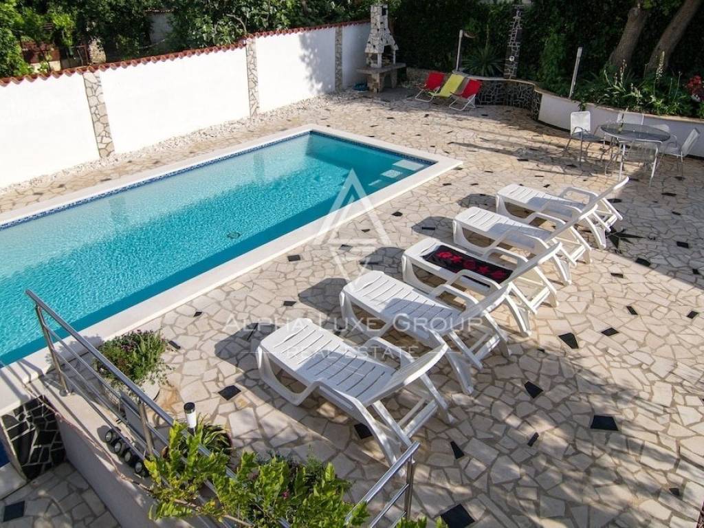 In der charmanten Touristengegend Banjole in Medulin befindet sich dieses Mehrfamilienhaus, das umfangreiche Annehmlichkeiten bietet, darunter einen Swimmingpool und einen Jacuzzi. Das Haus erstreckt sich über beeindruckende 290 Quadratmeter und drei Ebenen: Erdgeschoss, erster und zweiter Stock. Errichtet im Jahr 1990, wurde diese Immobilie sorgfältig in den Jahren 2014 und erneut 2022 renoviert und modernisiert.