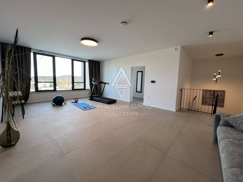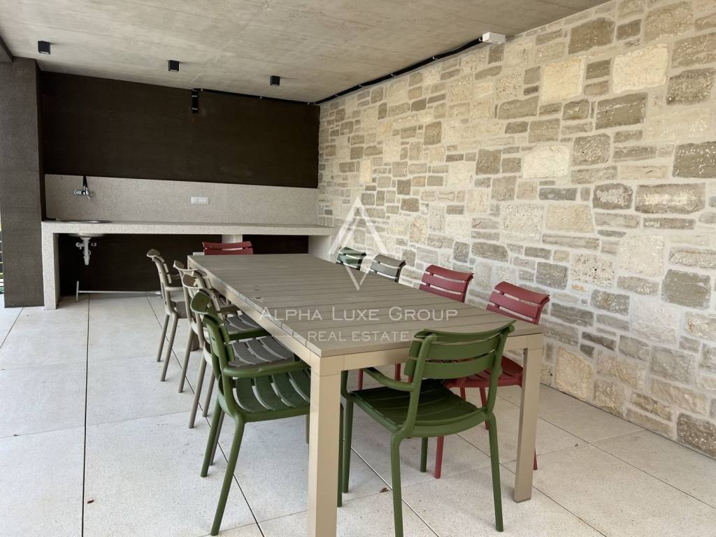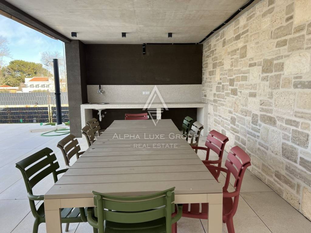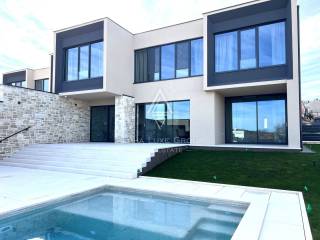 Das luxuriöse, moderne Doppelhaus liegt in der ruhigen und idyllischen Umgebung von Rovinjsko Selo und bietet einen erstklassigen Wohnraum mit vollem Komfort. Mit 250 m² Wohnfläche, verteilt auf zwei Etagen, und einem Grundstück von 500 m², das einen Garten, einen Pool und eine Sommerküche umfasst, ist diese Immobilie der ideale Ort für eine Familie, die eine ruhige Oase mit modernen Annehmlichkeiten sucht. Die perfekte Kombination aus modernem Design und Funktionalität ermöglicht es, jeden Winkel dieses luxuriösen Hauses zu genießen.