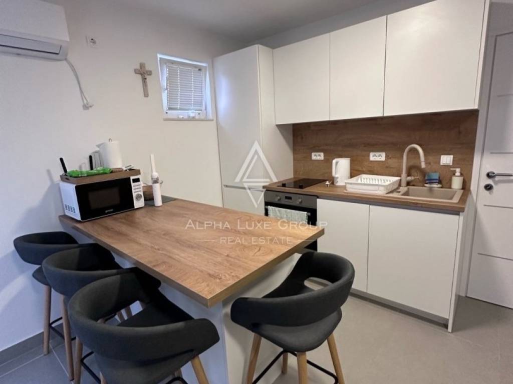Nur 3 km von Novigrad entfernt befindet sich diese vollständig renovierte und möblierte Wohnung, die eine perfekte Kombination aus Funktionalität und Komfort bietet. Sie liegt im ersten Stock eines gepflegten Mehrfamilienhauses und erstreckt sich über 40 m², die optimal für ein angenehmes Wohnerlebnis gestaltet sind. Die Raumaufteilung umfasst einen Eingangsflur, ein gemütliches Schlafzimmer mit Zugang zu einer privaten Terrasse, ein modernes Badezimmer sowie eine offene Küche mit Essbereich und Wohnzimmer, das auf eine zweite, kleinere Terrasse führt.