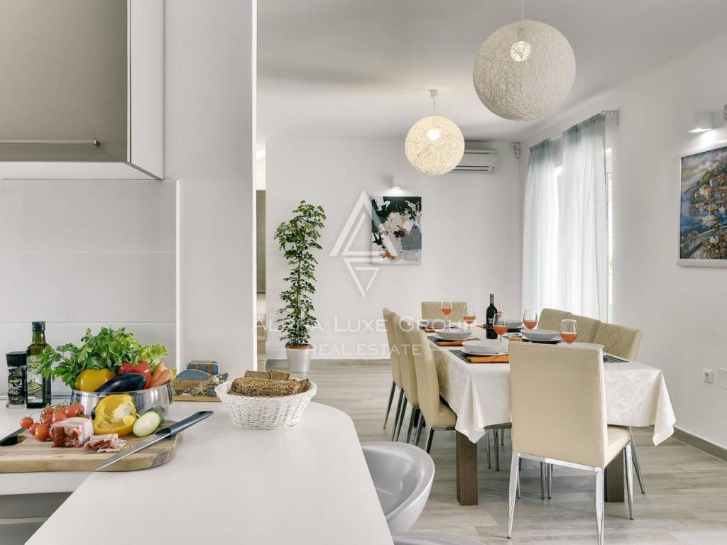 Beide Villen verfügen über gepflegte Gärten, Parkplätze und obere Terrassen mit teilweisem Meerblick. Dank hochwertiger Materialien und moderner Bauweise bieten sie ganzjährigen Komfort und Stil.