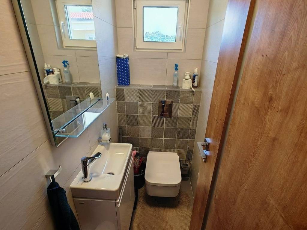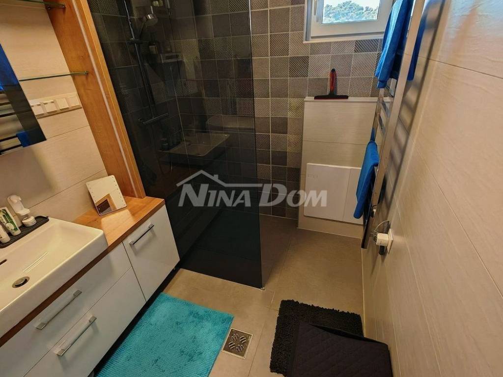 Lijepo uređeni apartman na južnoj strani otoka Vira, smještena u mirnoj i slijepoj ulici bez prometa. U neposrednoj blizini centra otoka Vira. Od lijepo uređene pjeskovite plaže udaljena je svega 300 metara. Smješten je na prvom katu. Sastoji se od stubišta, lođe, kuhinje s dnevnim boravkom, dvije spavaće sobe, kupaona, wc,. Komplerno je renoviran i opremljen i kao takav se prodaje. Posjeduje samostalni priključak na elektro mrežu, voda: cisterna. Nekretnina je legalizirana, etažirana s vlasništvom bez tereta.