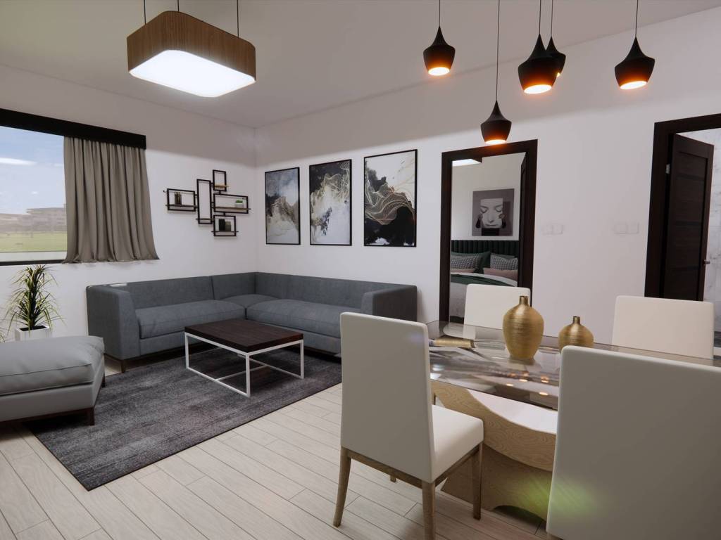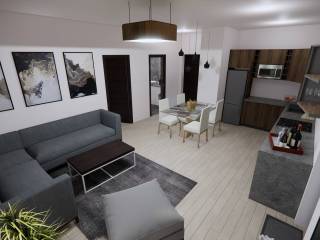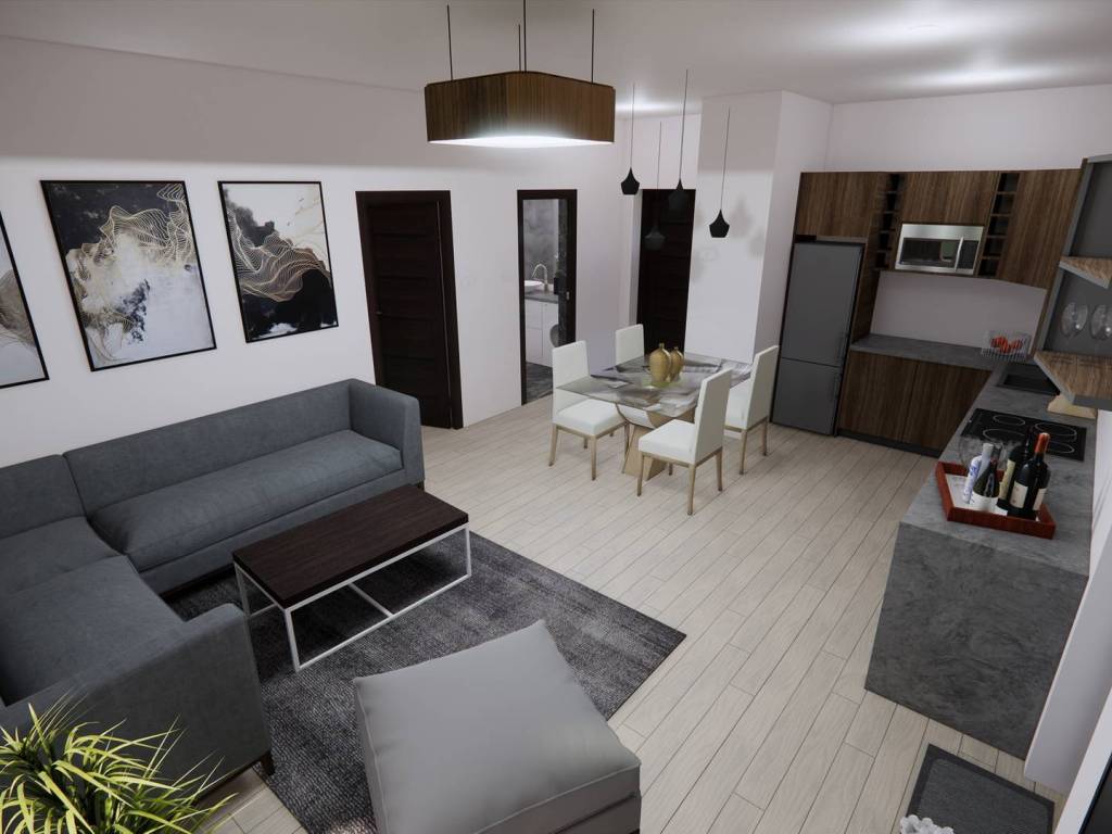 Wohnzimmer mit Küche und Essbereich – 25,80 m2