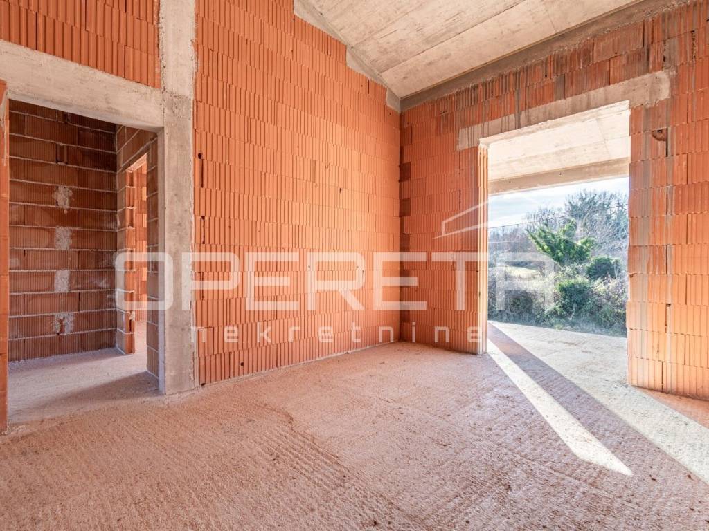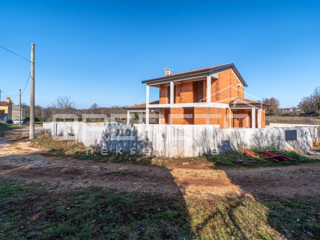 In ruhiger Lage, nur 2 km vom Zentrum von Višnjan entfernt, steht ein freistehendes Haus in der Rohbauphase zum Verkauf. Die Gesamtfläche der Immobilie beträgt 165 m2 und die Wohnfläche ist funktionell auf zwei Etagen verteilt. Das Erdgeschoss umfasst ein geräumiges Wohnzimmer mit Küche und Essbereich sowie Ausgang zur Terrasse, ein Schlafzimmer mit eigenem Bad, ein Gäste-WC und einen Abstellraum. Im Obergeschoss befinden sich zwei weitere Schlafzimmer, jedes mit eigenem Bad und Zugang zu einer gemeinsamen Terrasse. Das Haus befindet sich auf einem 555 m2 großen Grundstück, auf dem auch ein 28 m2 großer Swimmingpool untergebracht ist. Die Immobilie wird im aktuellen Zustand verkauft, was dem neuen Eigentümer die Möglichkeit bietet, den Innenausbau nach eigenen Wünschen zu gestalten, wobei die Strom- und Wasseranschlüsse bereits im Preis inbegriffen sind.