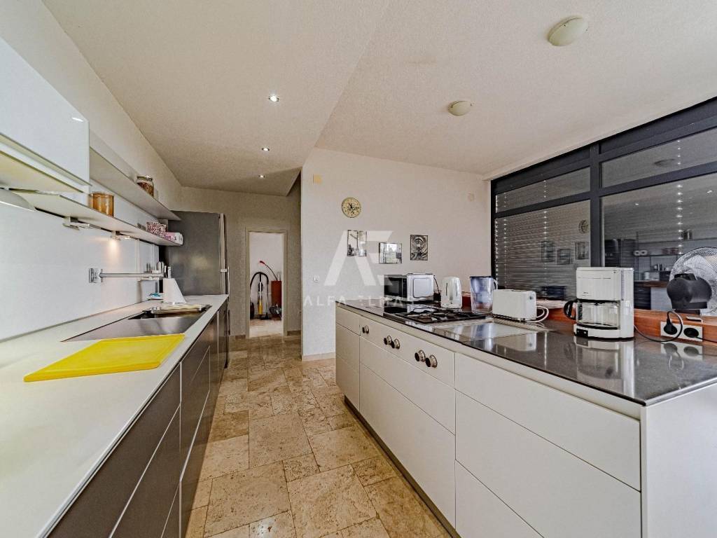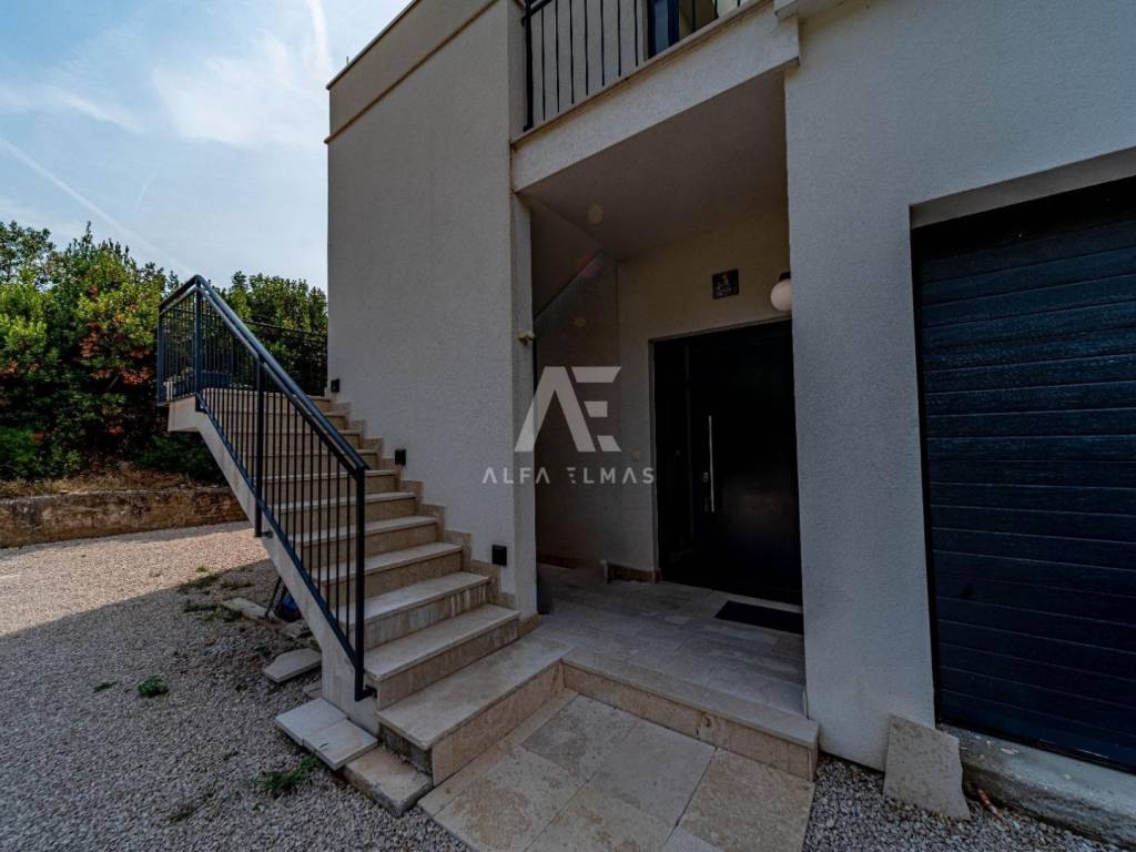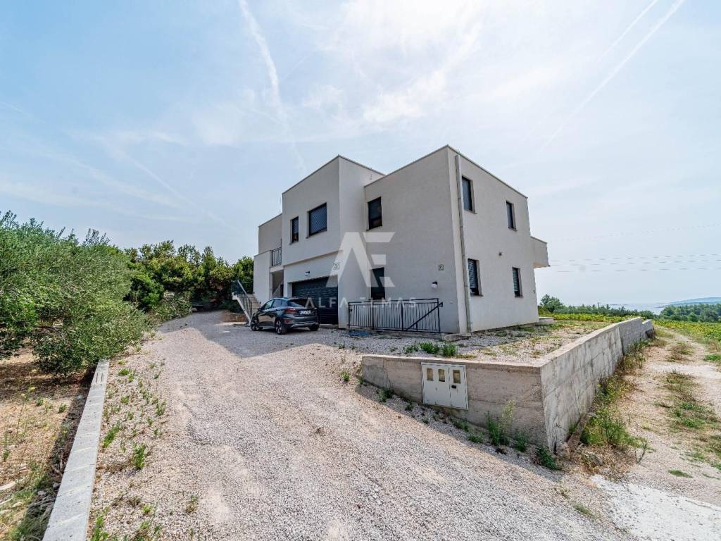 Orebić, Auf einem Grundstück von 617 m² befindet sich ein freistehendes Wohnhaus mit einer gesamten Wohnfläche von ca. 350 m². Das Haus erstreckt sich über Erdgeschoss, Obergeschoss, Keller sowie eine Doppelgarage und ist funktional konzipiert, sodass drei separate Wohneinheiten genutzt werden können.