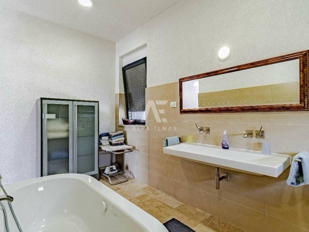 Das Erdgeschoss mit einer Fläche von ca. 150 m² ist vollständig eingerichtet und bezugsfertig. Es umfasst zwei Schlafzimmer, zwei Badezimmer, eine Küche mit Essbereich, ein Wohnzimmer sowie ein zusätzliches WC und eignet sich sowohl für ganzjähriges Wohnen als auch für die Vermietung.