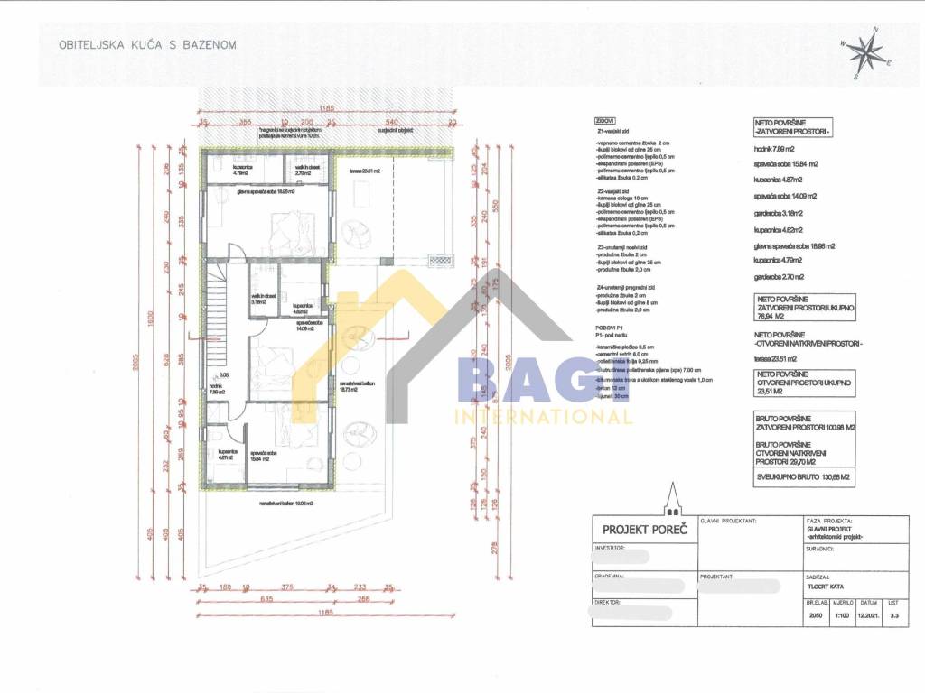 Auf dem Grundstück wurde der Bau eines Einfamilienhauses gemäß gültigem Projekt begonnen. Das geplante Objekt verfügt über eine Nettofläche von 211,39 m², eine überdachte Terrasse im Erdgeschoss mit 44,29 m² sowie einen Swimmingpool mit 30 m², wodurch sich diese Immobilie sowohl für den Eigenbedarf als auch für eine hochwertige touristische Vermietung eignet.