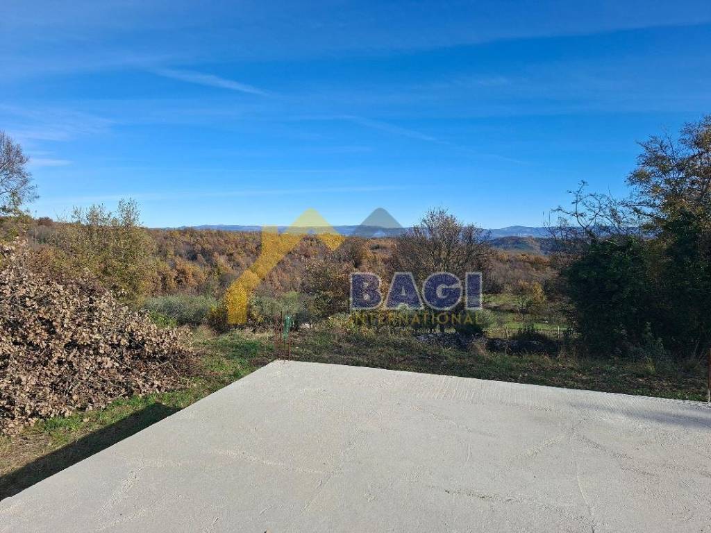 Zum Verkauf steht ein Baugrundstück mit begonnener Errichtung eines Einfamilienhauses in einer Ortschaft nahe Vižinada, in ruhiger und angenehmer Umgebung mit freiem Blick auf die Natur.
