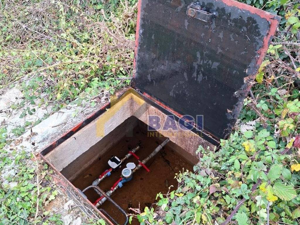 Wasseranschlussschacht mit installiertem Wasserzähler neben dem Grundstück