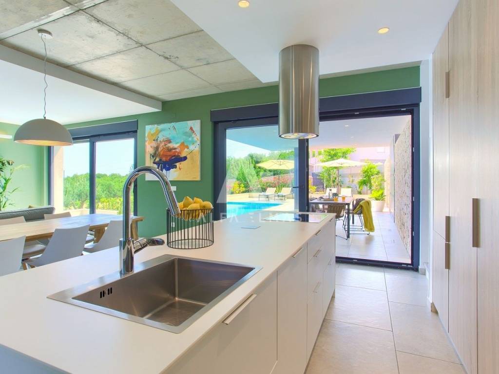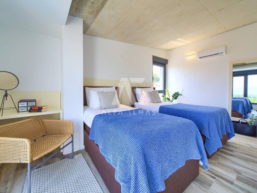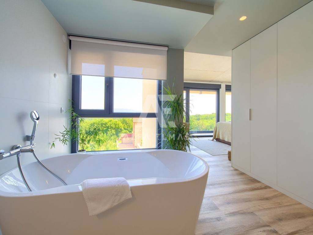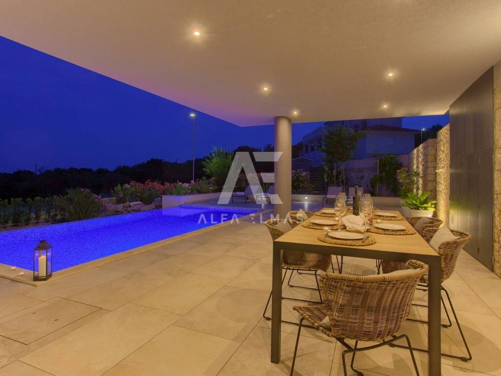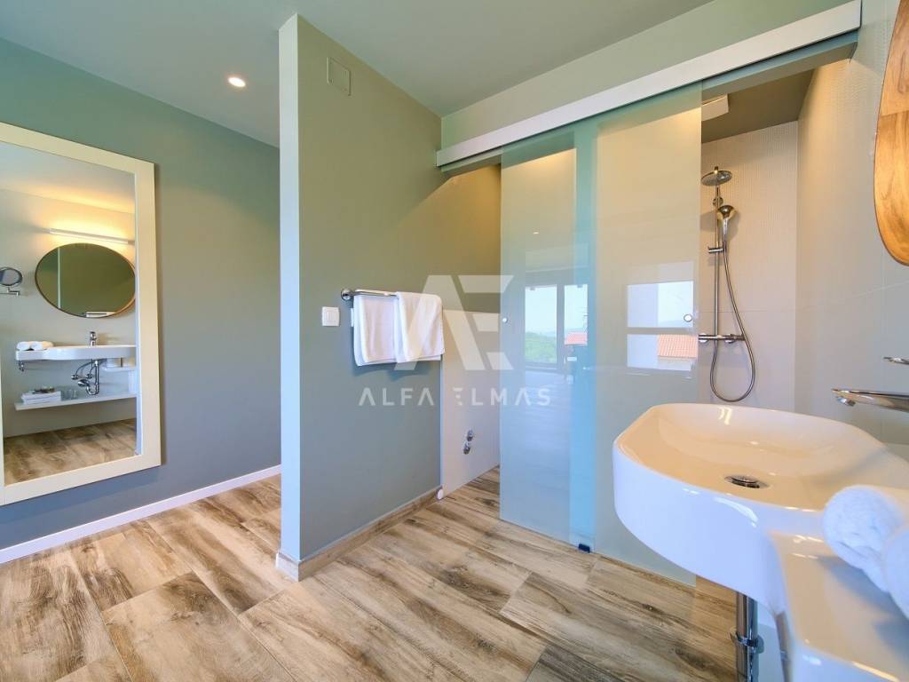 Krk, Umgebung, Luxusvilla mit Pool und Sauna zu verkaufen!! Luxusvilla in der Nähe von Krk mit modernen Elementen, Wohnfläche von 223 m2, auf einem Grundstück von 591 m2 und einem 400 m2 großen Garten, in dem sich ein wunderschöner Überlaufpool von 32 m2 befindet. Die Villa erstreckt sich über drei Etagen. Im Untergeschoss der Villa befindet sich ein Wellnessbereich mit Badezimmer, Heizraum und Abstellraum. Das Erdgeschoss besteht aus einem geräumigen und luftigen Wohnzimmer, einer Küche, einem Esszimmer, einer Toilette und einer Innentreppe, die in den ersten Stock führt, wo sich drei Schlafzimmer mit jeweils eigenem Bad und einer Terrasse mit herrlichem Meerblick befinden. Die Ausstattung der Villa auf Krk umfasst hochwertige Keramik, PVC-Tischlerei, hochwertige Sanitärkeramik, Sat-TV, Klimaanlage in den Zimmern und im Wohnzimmer. Das Grundstück der Villa ist mit mediterranen Pflanzen geschmückt, Parkplatz für zwei Autos. Die Villa befindet sich ca. 3000 m von Krk entfernt, gepflegte Strände und begleitende Annehmlichkeiten. Dokumentation in Ordnung!!