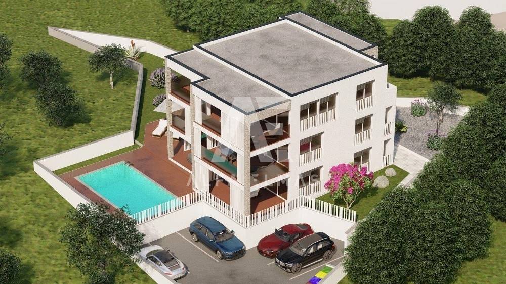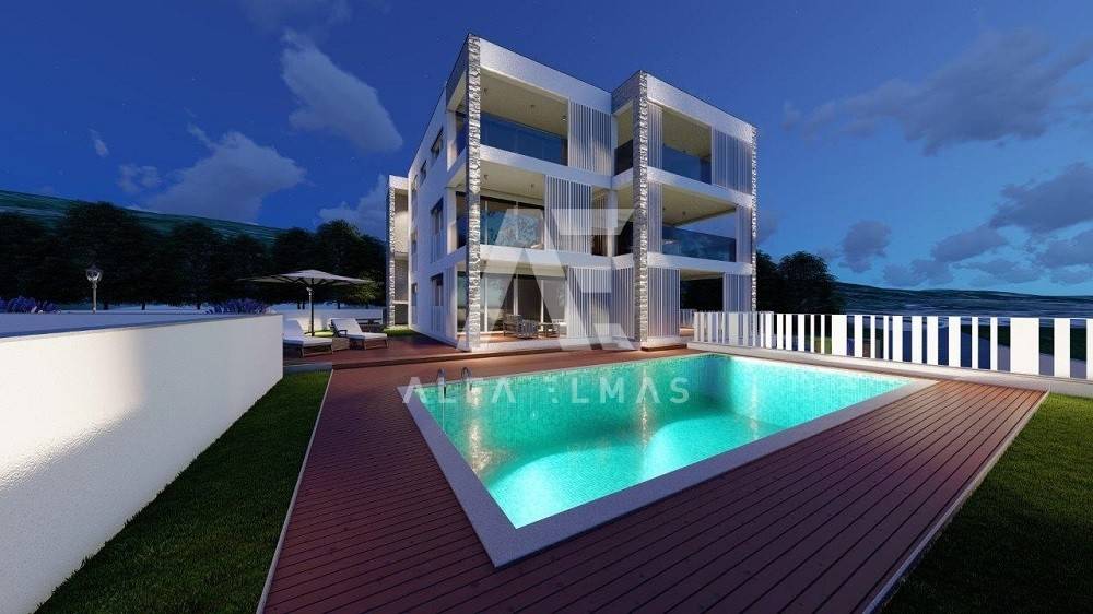 Punat, Neubau, Penthouse im zweiten Stock eines Luxuswohnhauses mit herrlichem Blick auf Punat und die Bucht von Punat!! Penthouse mit einer Fläche von 107,20 m2. besteht aus Flur, Wohnzimmer, Küche, Bad, zwei Schlafzimmern mit jeweils eigenem Bad, WC, Abstellraum und einer Terrasse mit herrlichem Blick auf das Meer und Punat. Zur hochwertigen Ausstattung des Neubaus gehören hochwertige Keramik, Sanitärkeramik, Heizung und Kühlung durch eine Klimaanlage, Fußbodenheizung, ein gemeinsamer beheizter Pool, der die Möglichkeit bietet, gegen den Strom zu schwimmen, und eine Liegewiese. Alle Wohnungen verfügen über Internet-TV und Telefonanschluss. Die Wohnung in Punat verfügt über einen Parkplatz im gepflegten Garten. Die Lage, in der sich die Wohnung befindet, ist sehr beliebt, die gepflegten Strände sind nur 200 m entfernt. und bieten zusätzliche Inhalte. Exklusive und moderne Architektur, Dokumentation in Ordnung. Verpassen Sie es nicht!!