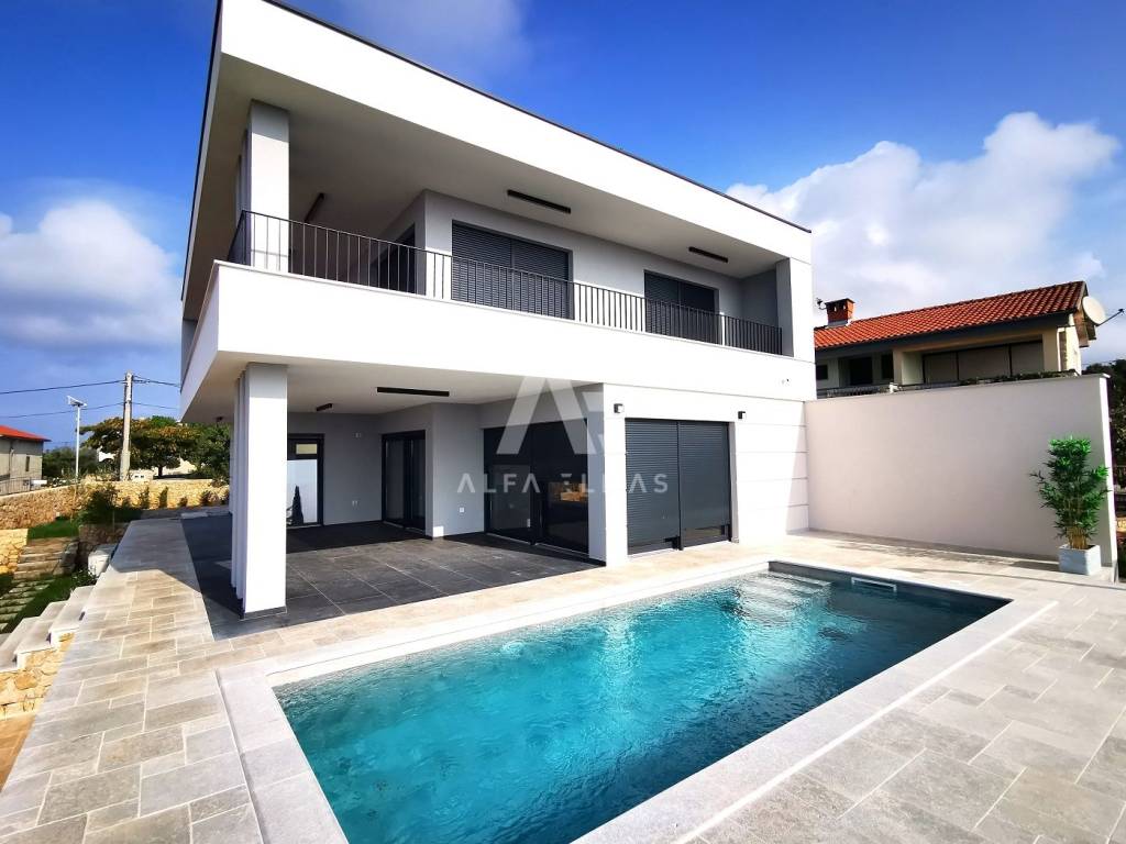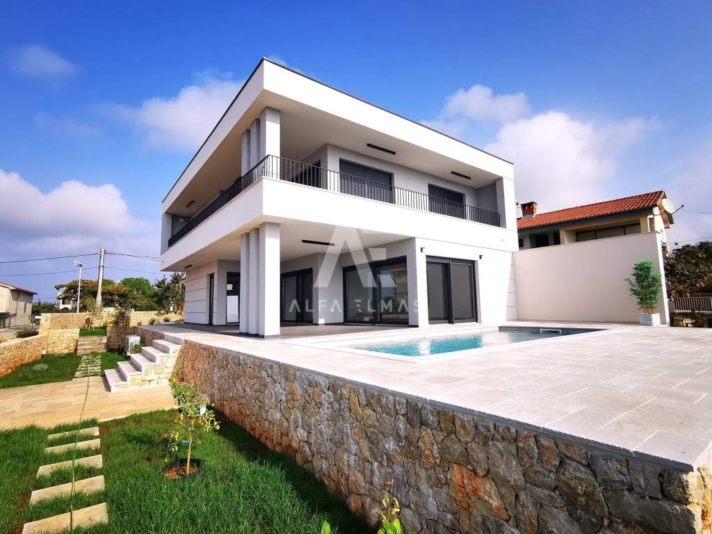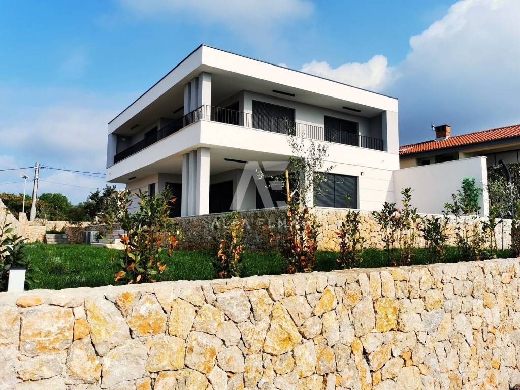 Linardići, eine imposante Villa moderner Architektur mit Swimmingpool in ruhiger Lage mit Blick auf das Meer. Ein wunderschöner Garten, der das Unvereinbare vereint und eine Vielzahl von Möglichkeiten für einen schönen und sinnvollen Urlaub mit einer einzigartigen und idyllischen Landschaft bietet. Diese moderne Luxusvilla mit Swimmingpool erstreckt sich über zwei großzügige Etagen mit einer Gesamtwohnfläche von 200 m2, die Ruhe und Privatsphäre wird zusätzlich durch einen angelegten Garten von 532 m2 geschmückt. Das Erdgeschoss besteht aus einem luftigen Eingangsbereich, einem Abstellraum, einer Toilette, einer Küche, einem Esszimmer und einem Wohnzimmer in einer Einheit mit Zugang zu einer großen überdachten Terrasse. Die Innentreppe führt in den ersten Stock, wo sich vier geräumige Schlafzimmer mit jeweils eigenem Bad befinden, zwei Zimmer haben Zugang zu einer Terrasse mit herrlichem Blick auf das Meer haben!! Im Garten gibt es einen Swimmingpool mit Liegewiese und Solardusche. Zur umfangreichen Ausstattung gehören eine zentrale Fußbodenheizung, die sich durch das Wohnzimmer und alle Badezimmer erstreckt und auch an kälteren Tagen für eine angenehmes klima ima Haus sorgt. Eine Klimaanlage in allen Räumen, hochwertige Keramik, Außentischlerei aus Aluminium, hochwertige Innentischlerei aus Holz, die Böden sind mit hochwertigem Holzparkett und Keramik belegt. Die Umgebung selbst ist äußerst schön mit mediterranen Pflanzen geschmückt und mit einem Bewässerungssystem ausgestattet. Auf dem Grundstück sind zwei Parkplätze vorhanden. Die Villa befindet sich in einem kleinen Inseldorf auf der Insel Krk, nur 2000 m vom Meer und seinen Annehmlichkeiten entfernt. Sauberes und klares Meer und kleine Buchten machen es ideal für Familientourismus. Dazu trägt das milde mediterrane Klima bei, das den Sommer mit einem angenehmen Mistrawind warm macht. Dokumentation in Ordnung!!