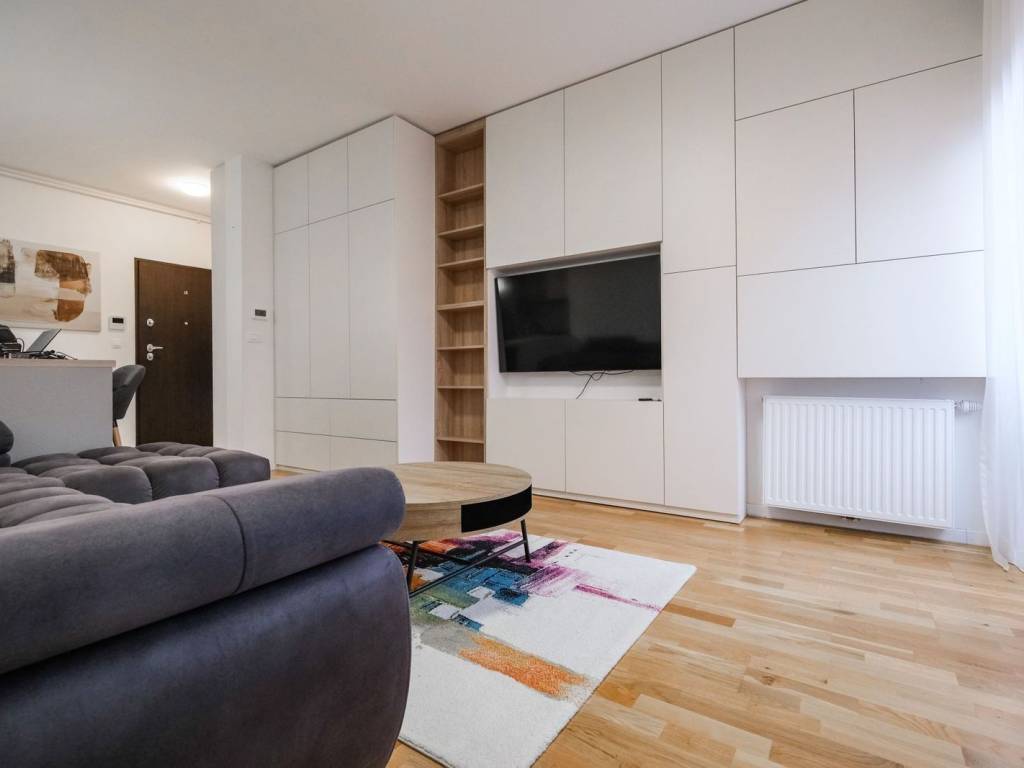 Iznajmljuje se lijepo uređen i potpuno namješten dvosoban stan smješten u novozagrebačkom naselju Trokut, u manjoj novogradnji iz 2023. godine. Ulica u kojoj se nalazi zgrada dio je novijeg planski izgrađenog stambenog kompleksa.