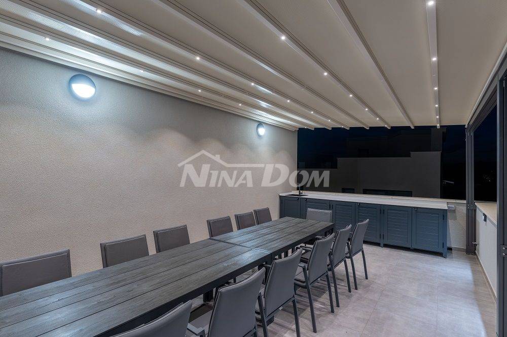 drugi kat: stubište, kuhinja s blagovaonicom, kupaona, izlaz na veliku krovnu terasu s pomoćnom vanjskom kuhinjom i prostorom za druženje s hidro masažnom kadom,