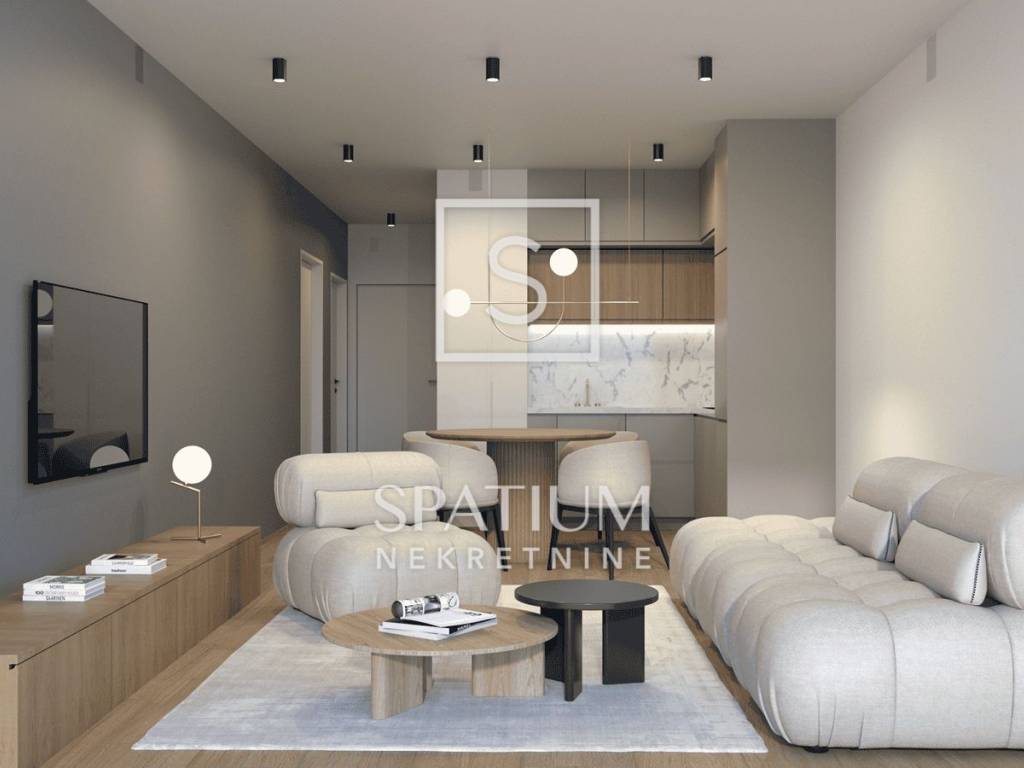 Die Wohnung befindet sich im zweiten Stock des Gebäudes und verfügt über eine gesamte Nettofläche von 60,12 m², einschließlich Wohnfläche, Loggia, Außenstellplatz und Abstellraum im Erdgeschoss. Die Wohnfläche von 55 m² besteht aus einem großzügigen Wohnzimmer mit Küche und Essbereich, zwei Schlafzimmern, einem Badezimmer und einem Flur, während die Loggia einen angenehmen Außenbereich zum Entspannen bietet. Die Wohnung ist auf eine optimale Raumaufteilung, viel Tageslicht und einen hohen Wohnkomfort ausgelegt und eignet sich sowohl ideal für das Familienleben als auch als Investition zur langfristigen Vermietung.