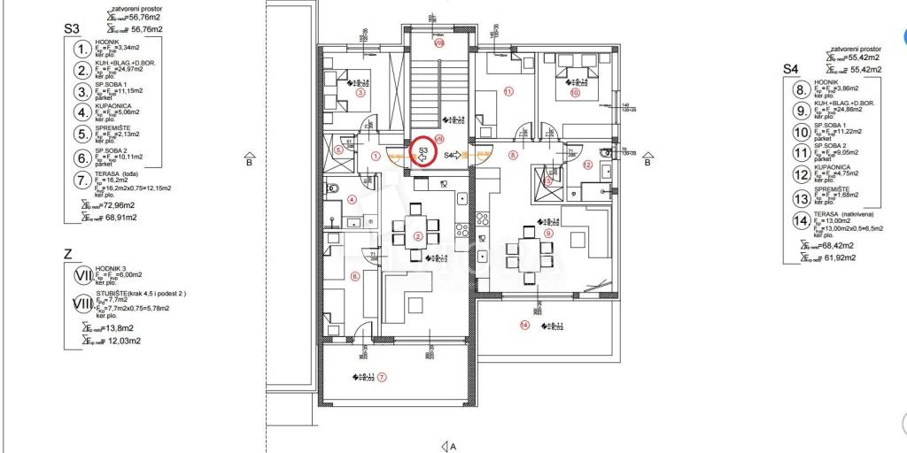 Brodarica – Neubau. Das Mehrfamilienhaus befindet sich in einer ruhigen Umgebung, in der Nähe aller öffentlichen Einrichtungen. Im Gebäude K2 befindet sich die Wohnung S3 mit einer gesamten Nutzfläche von 73,91 m², inklusive Parkplatz, gelegen im Obergeschoss.